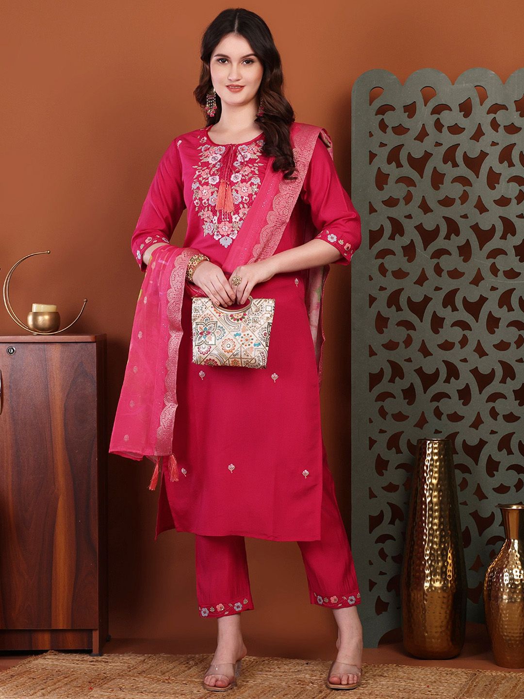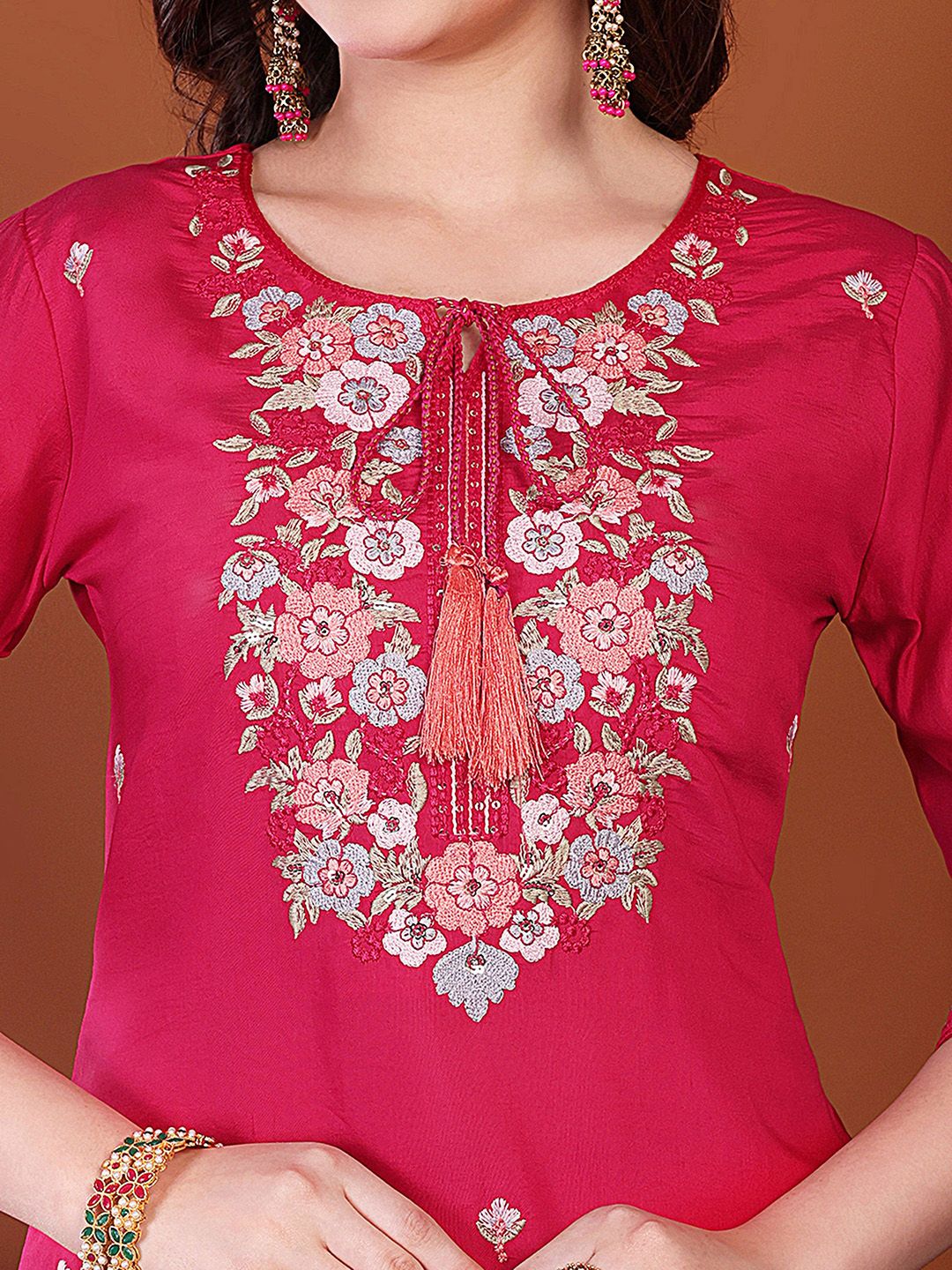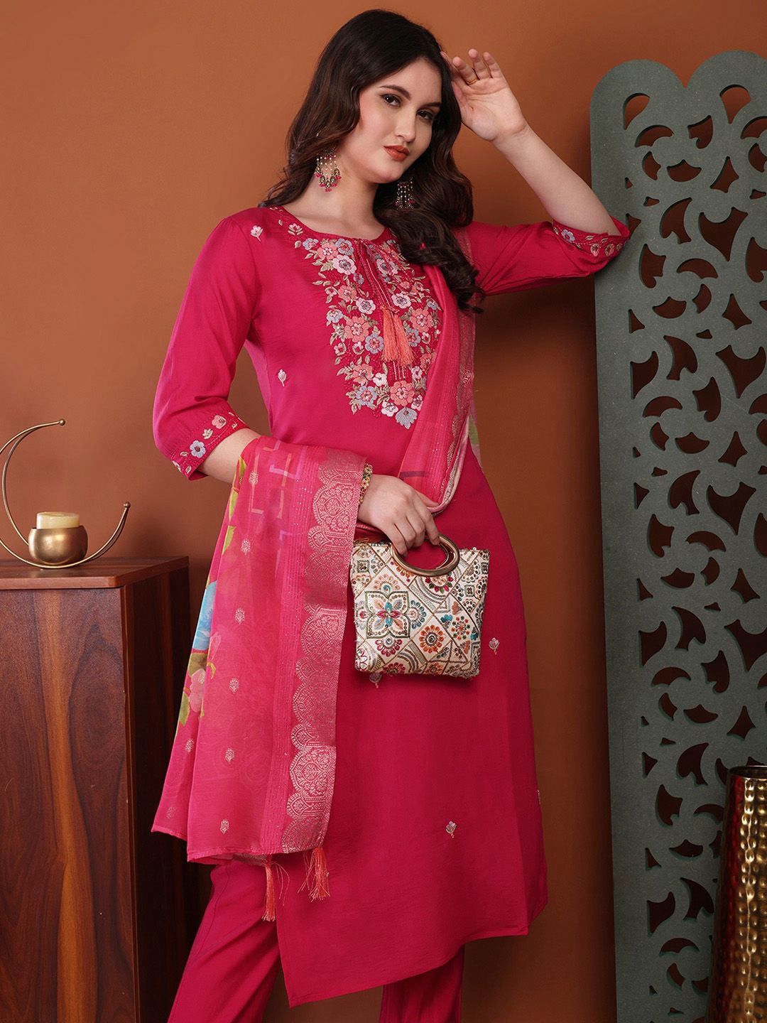 Buy this stylish Milastru Women Floral Embroidered Regular Thread Work Kurta with Trousers & Dupatta at Marincart Nepal. This product offers great quality and value. Perfect for those looking for the latest trends in fashion. Get yours now at unbeatable prices.