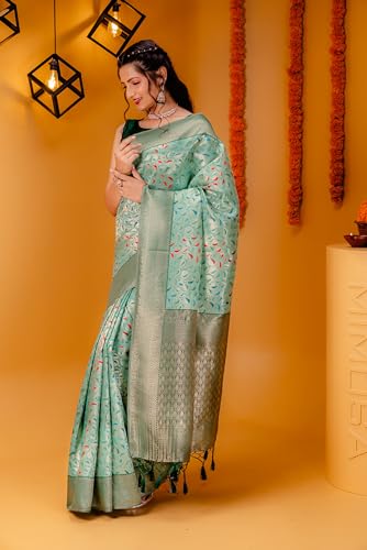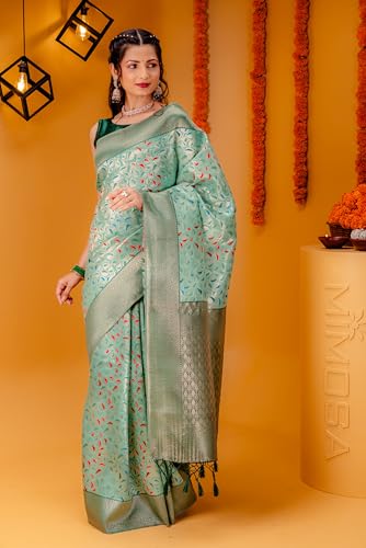 MIMOSA Art Silk Women's Woven Design Kanjivaram Style Art Silk Saree With Blouse Piece : Sa00001596Rmfree size, Rama