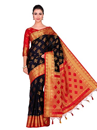 Mimosa Women's Kanjivaram Silk Saree With Blouse Piece (4309-312-Rd-Blk-Rd_Black)