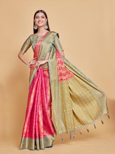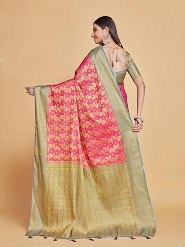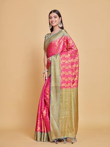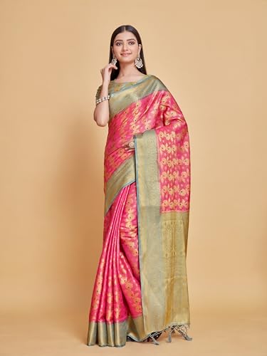MIMOSA Women's Woven Design Kanjivaram Style Art Silk Saree With Blouse Piece : Sa00001125Pnkfree, Pink