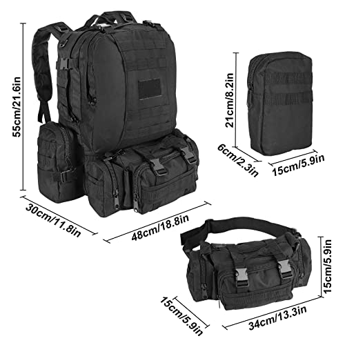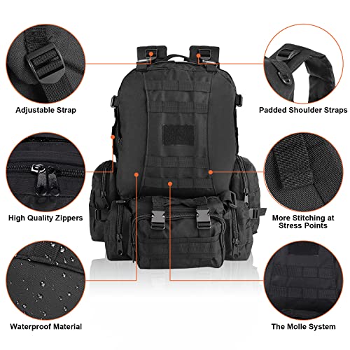 Mingpinhuius Military Tactical Backpack, 55L Large Army 3 Day Assault Pack Detachable Molle Bag for Outdoor Hiking Camping