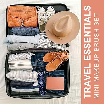 Mini Makeup Brush Set, Portable Mini Makeup Brush Case, Professional Travel Makeup Brush Set, Comes with Mirror, Ladies Face Eyebrow Blush and Lip Gloss