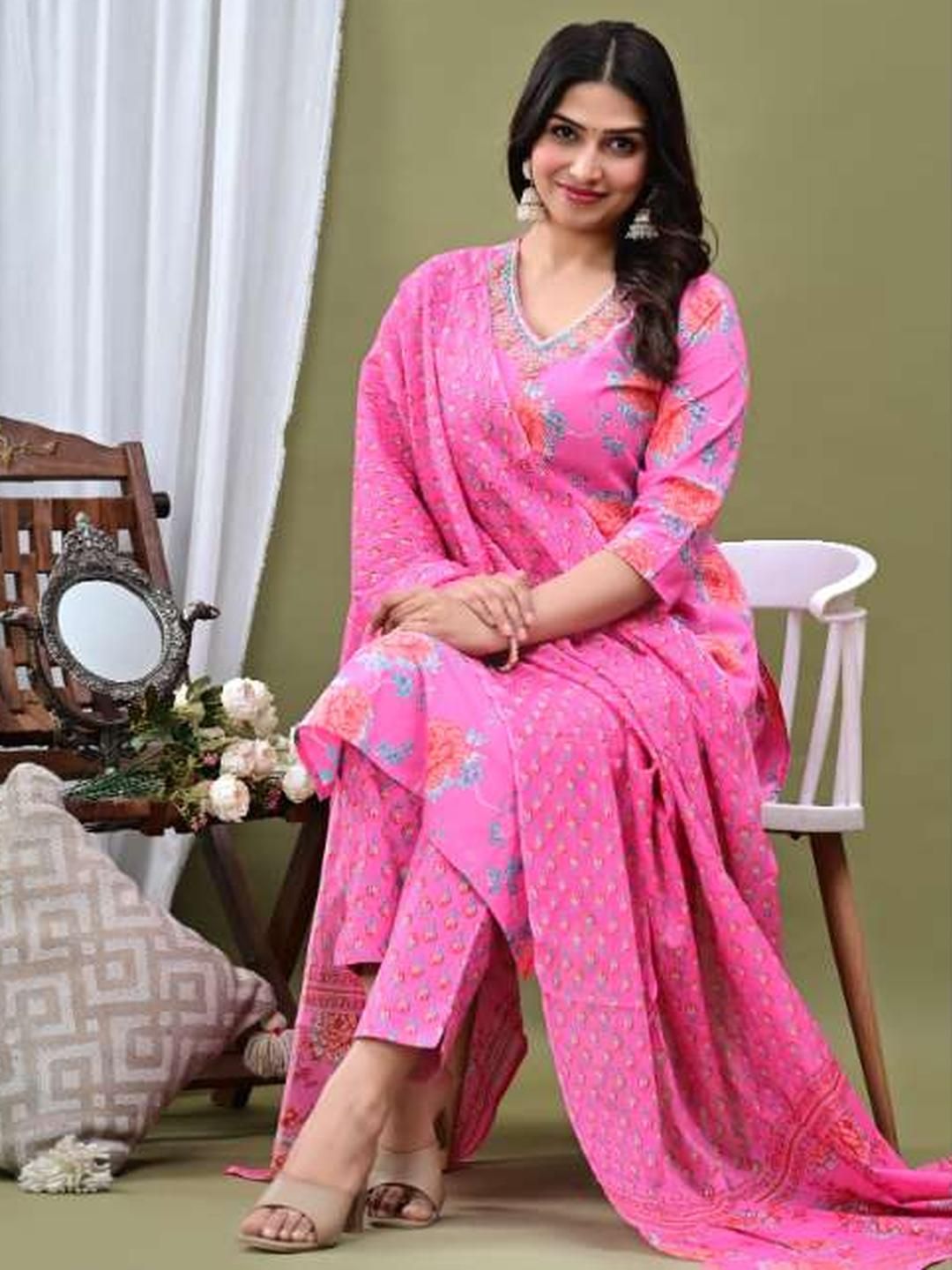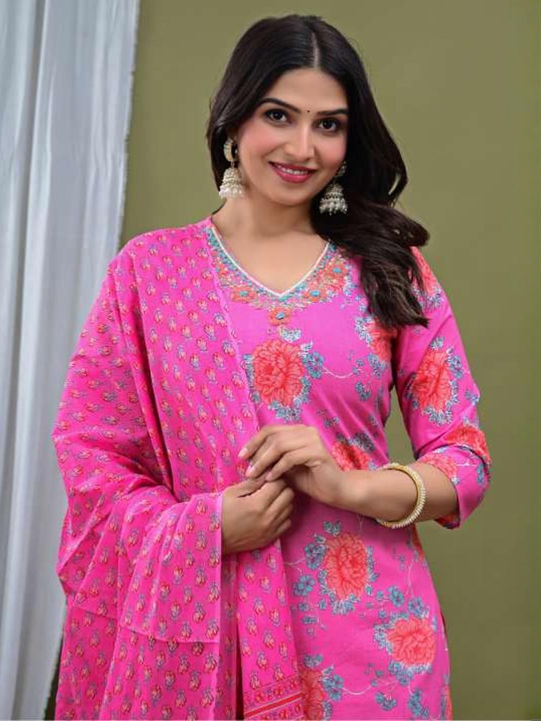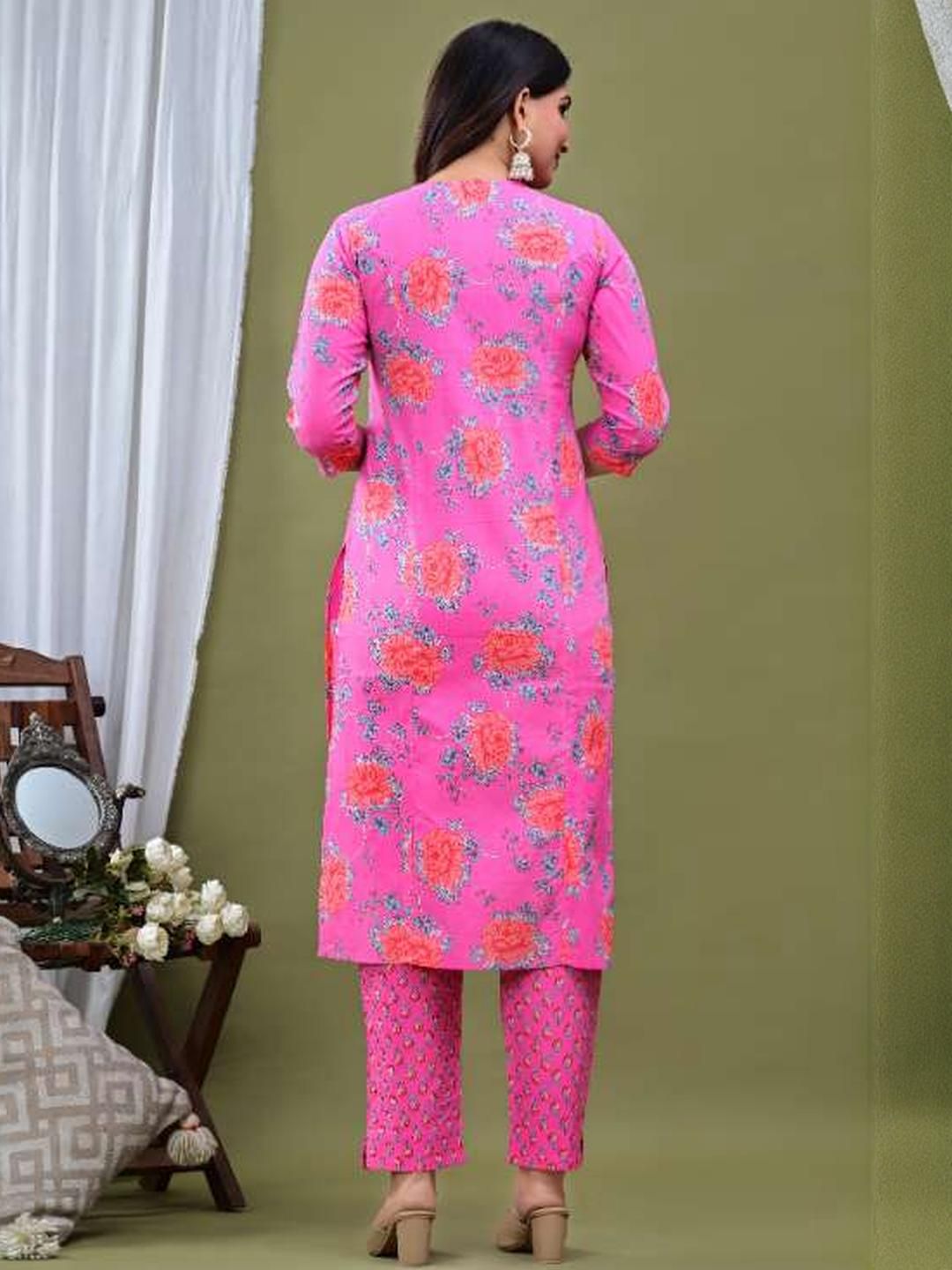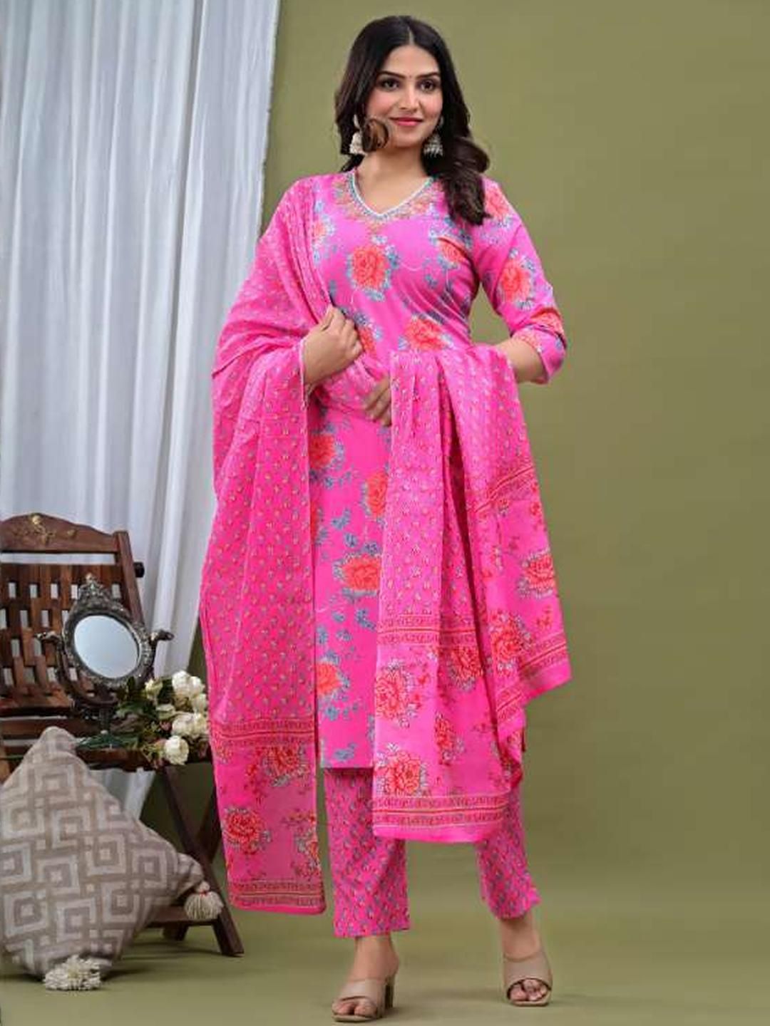 Mirasa Women Floral Printed Regular Pure Cotton Kurta with Trousers & With Dupatta