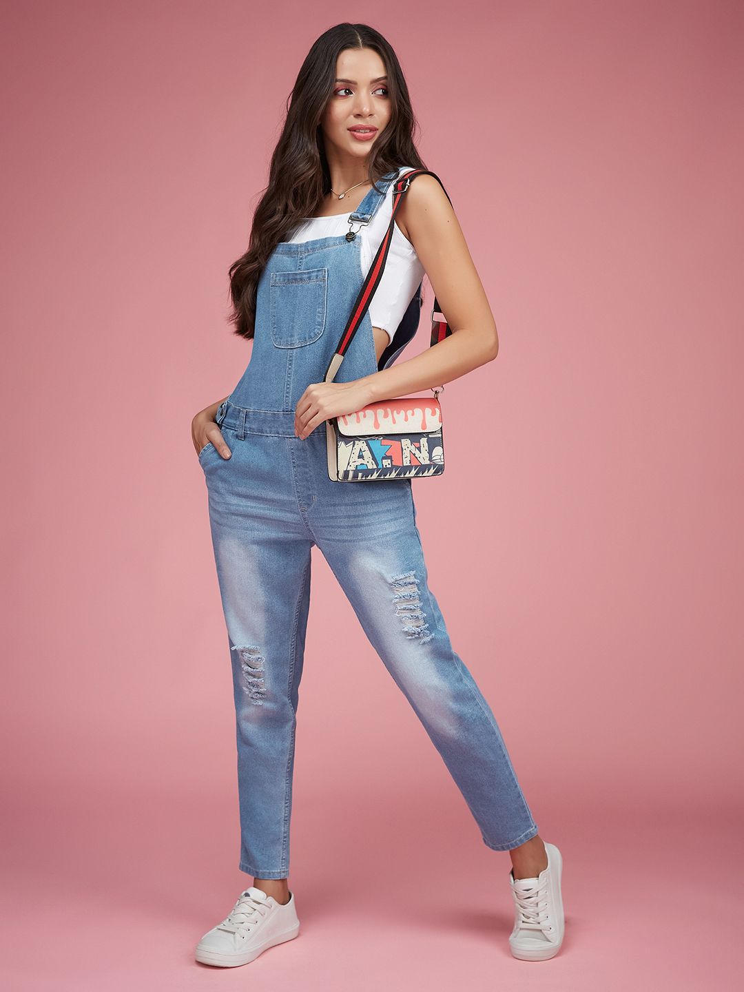 Miss Chase Women Straight Leg Cotton Mid Rise Denim Dungaree