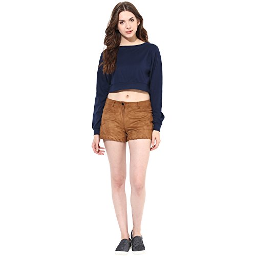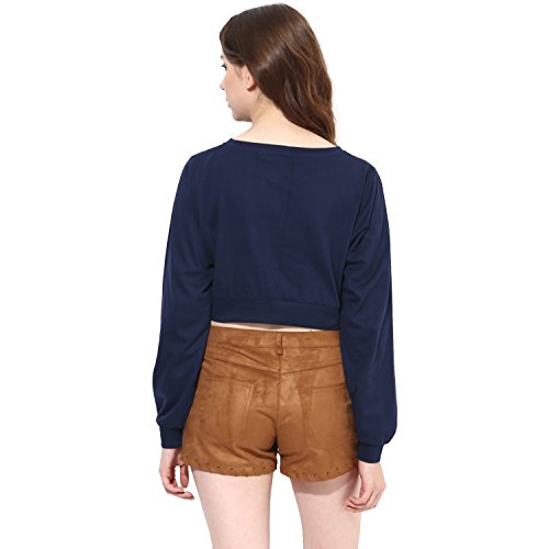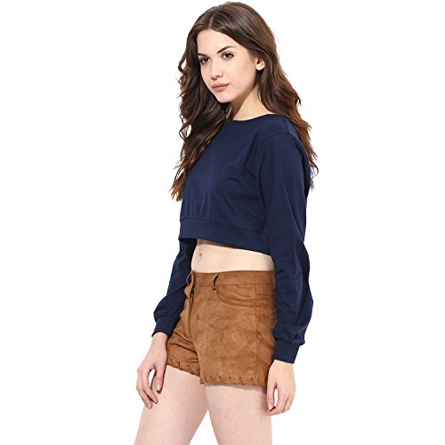 Miss Chase Women's Super Soft Round Neck Full Sleeves Solid Boxy Crop Top