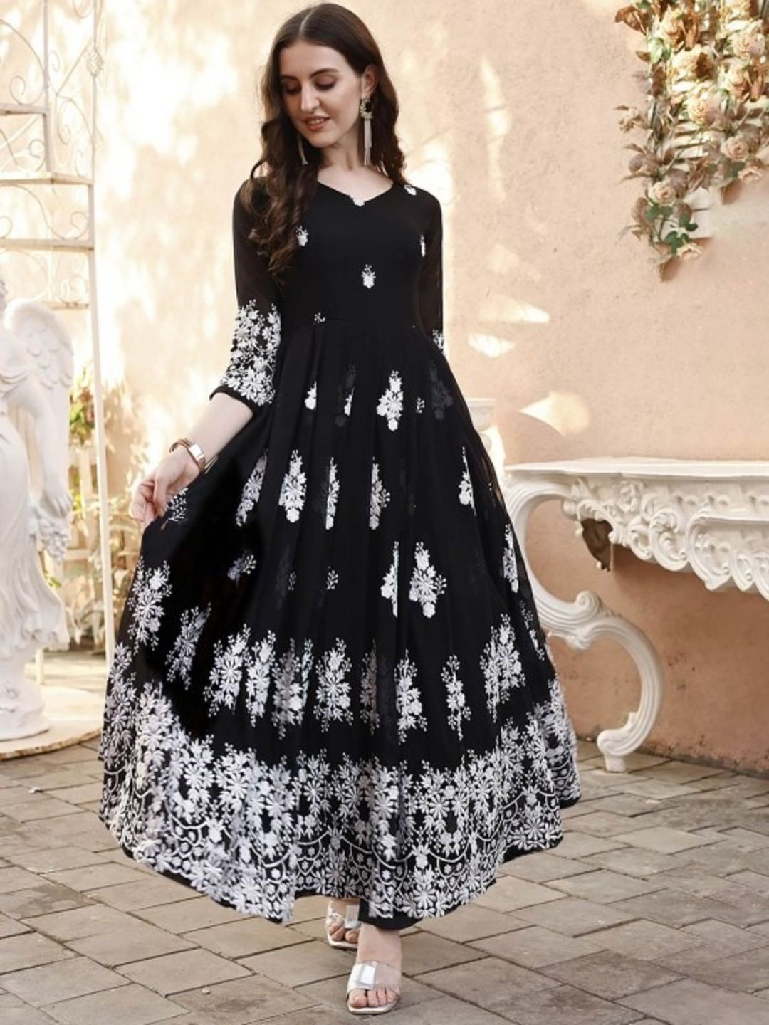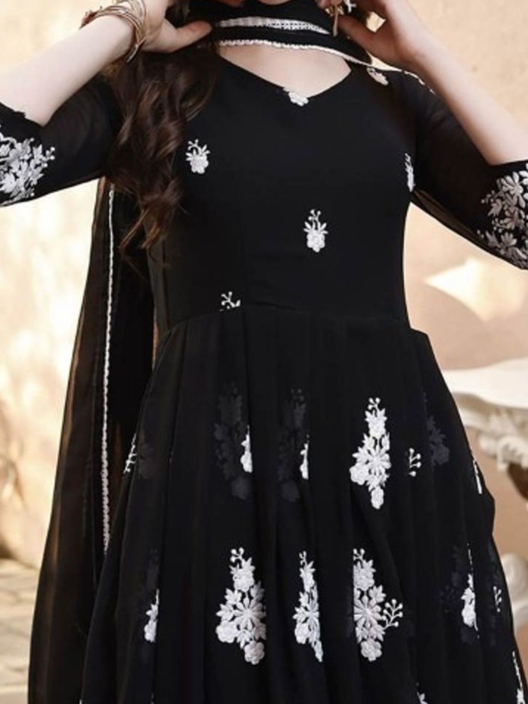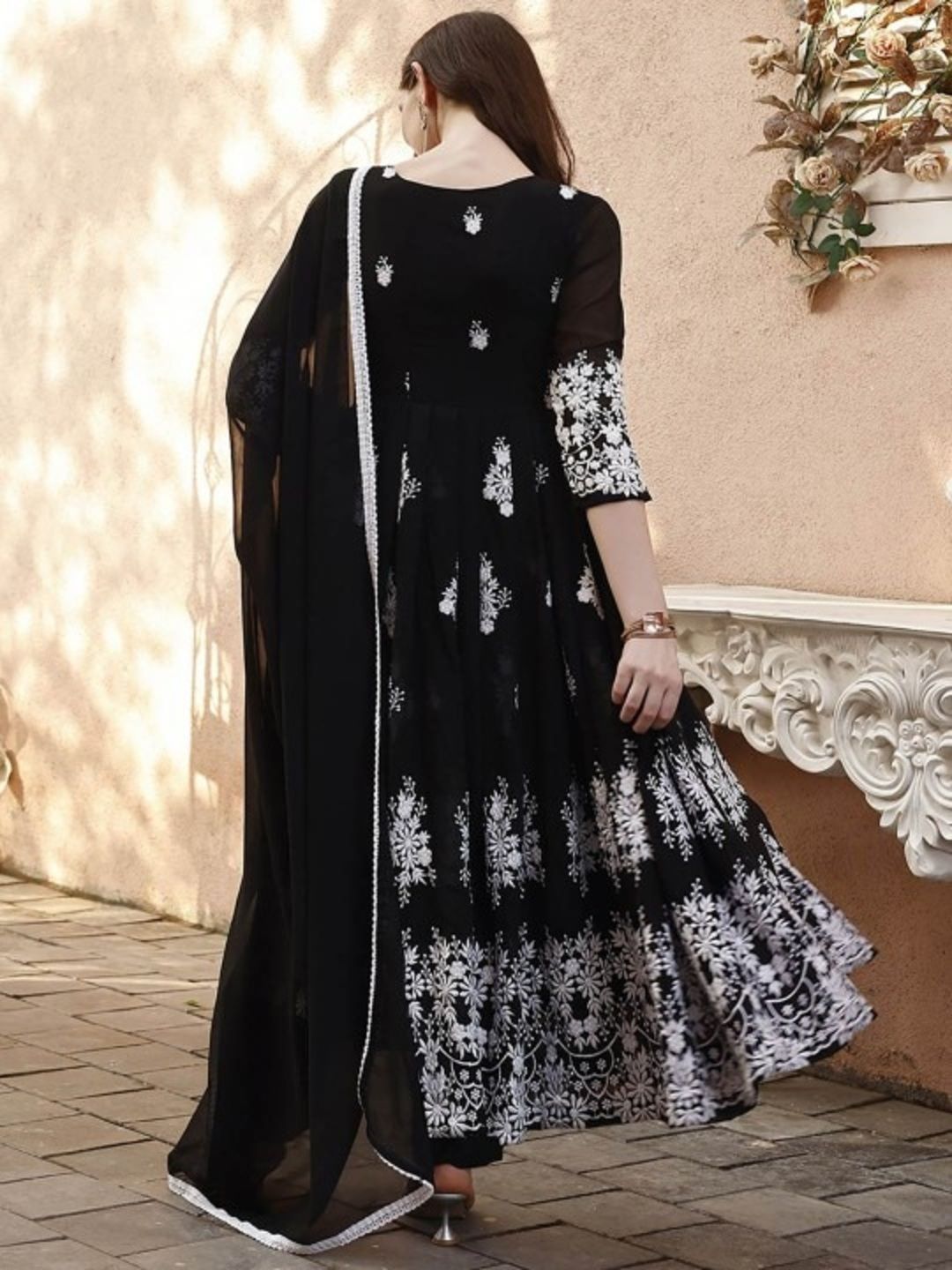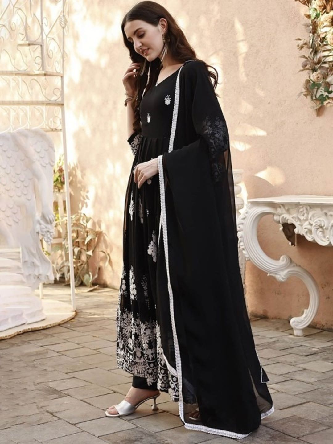 MISS CLOTHING Women Ethnic Motifs Embroidered Georgette Anarkali Kurta with Dupatta