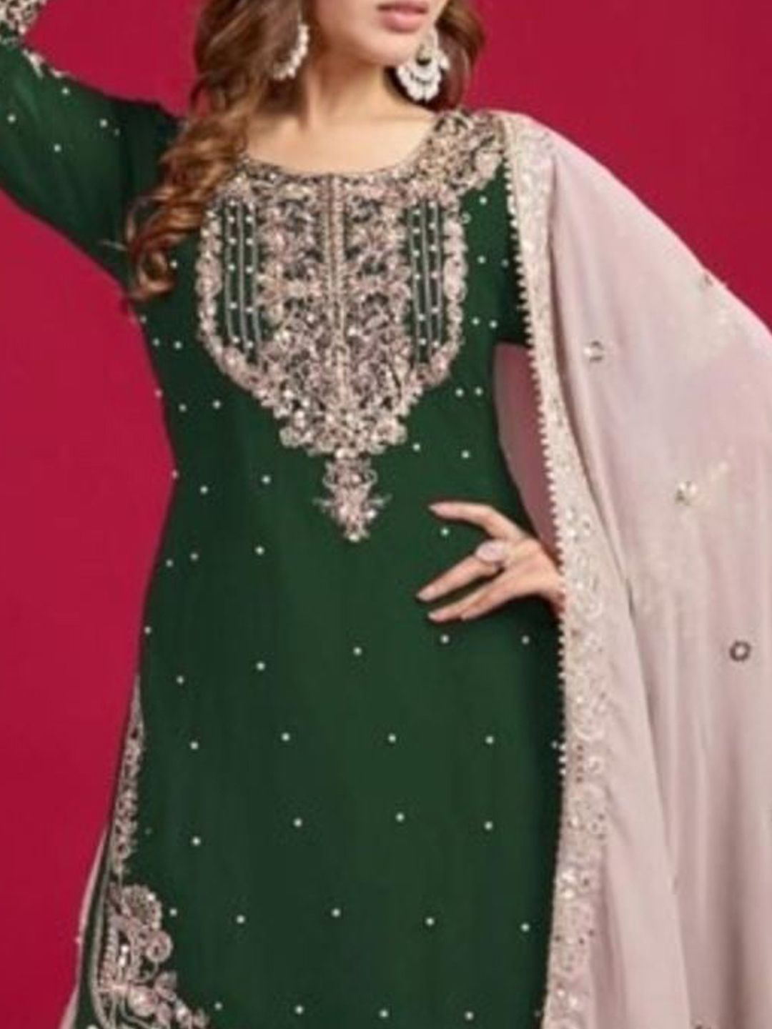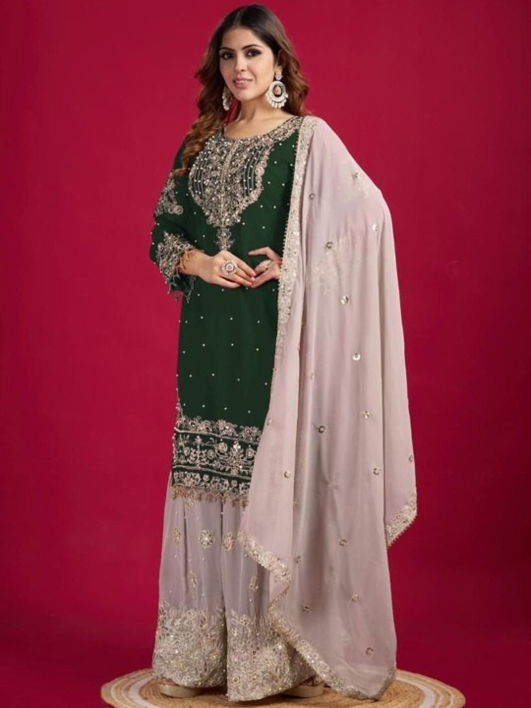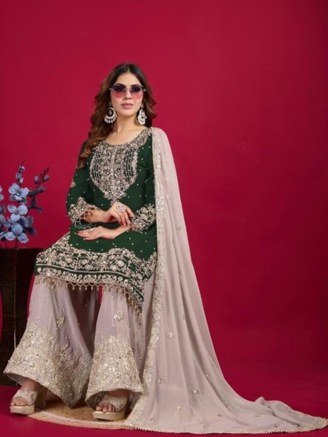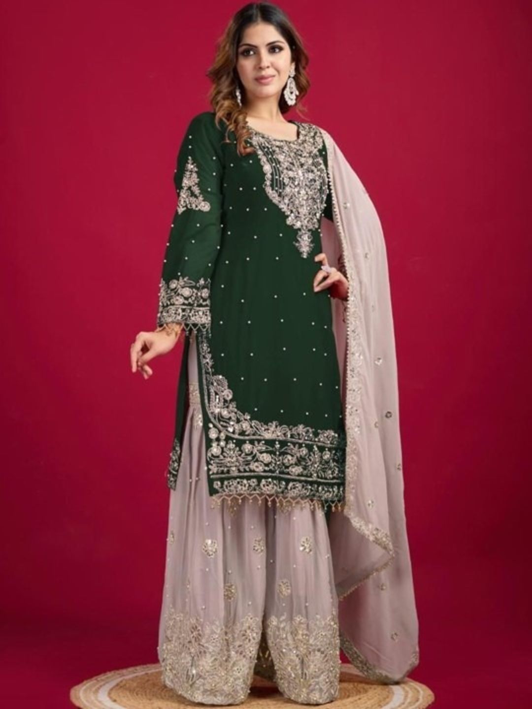 MISS CLOTHING Women Ethnic Motifs Embroidered Kurta with Sharara & Dupatta