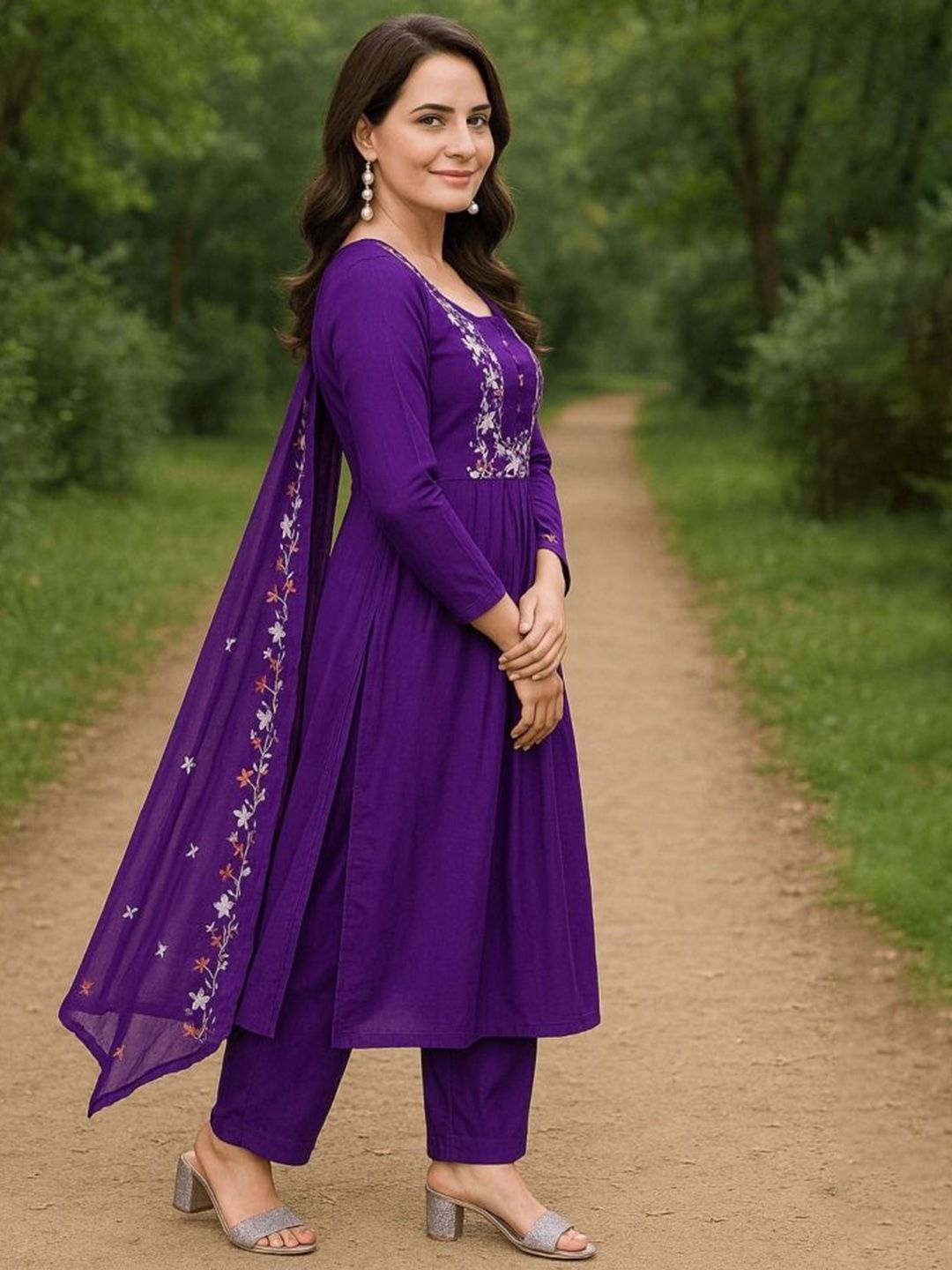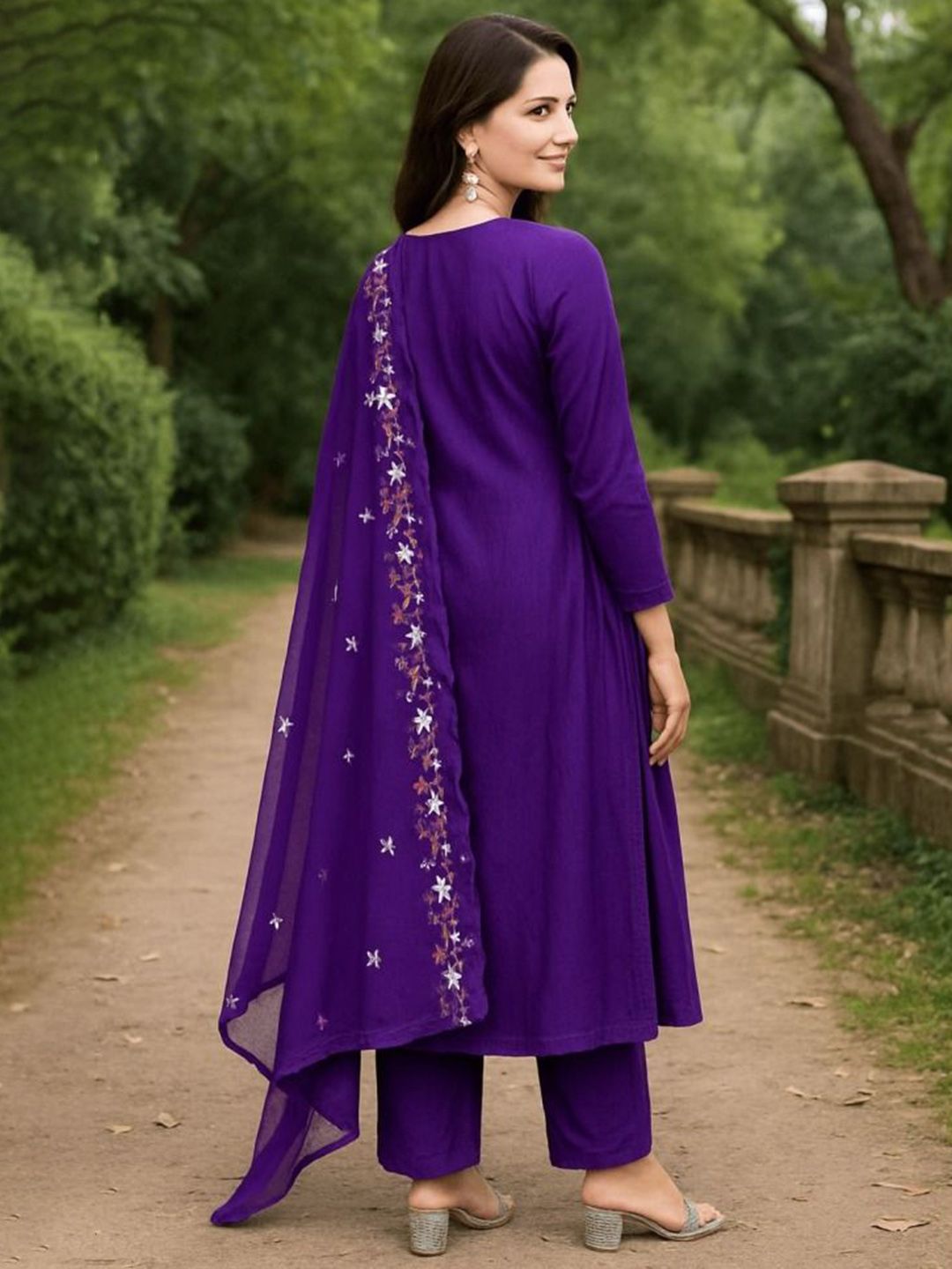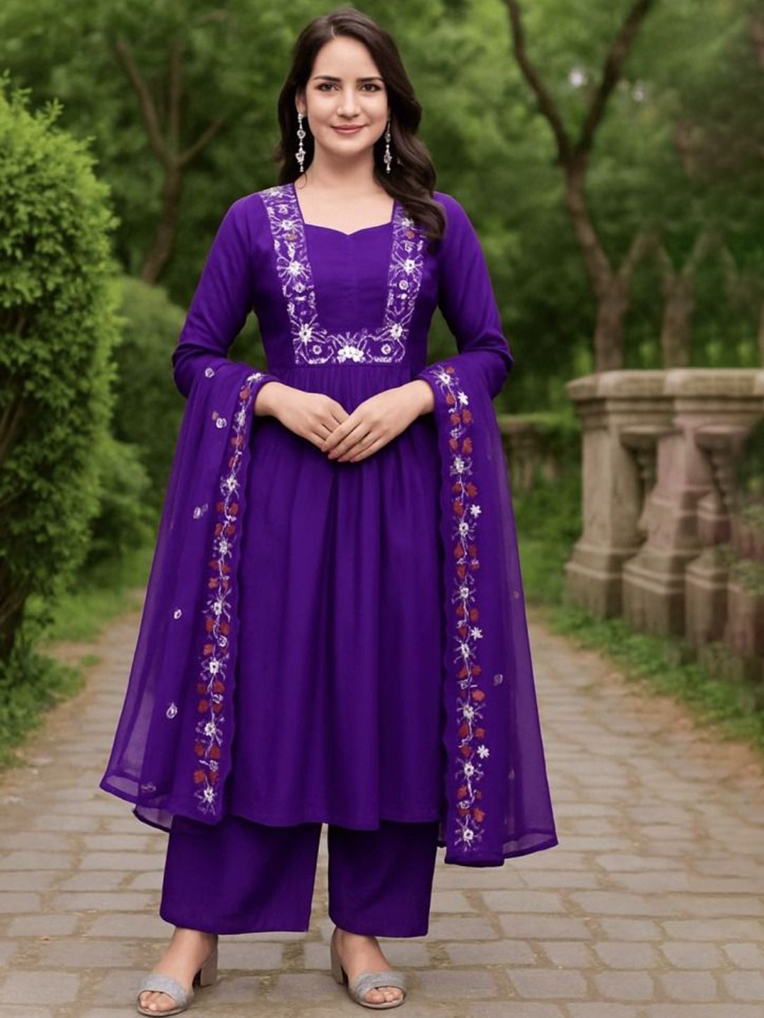 MISS CLOTHING Women Floral Embroidered Thread Work Kurta with Trousers & With Dupatta