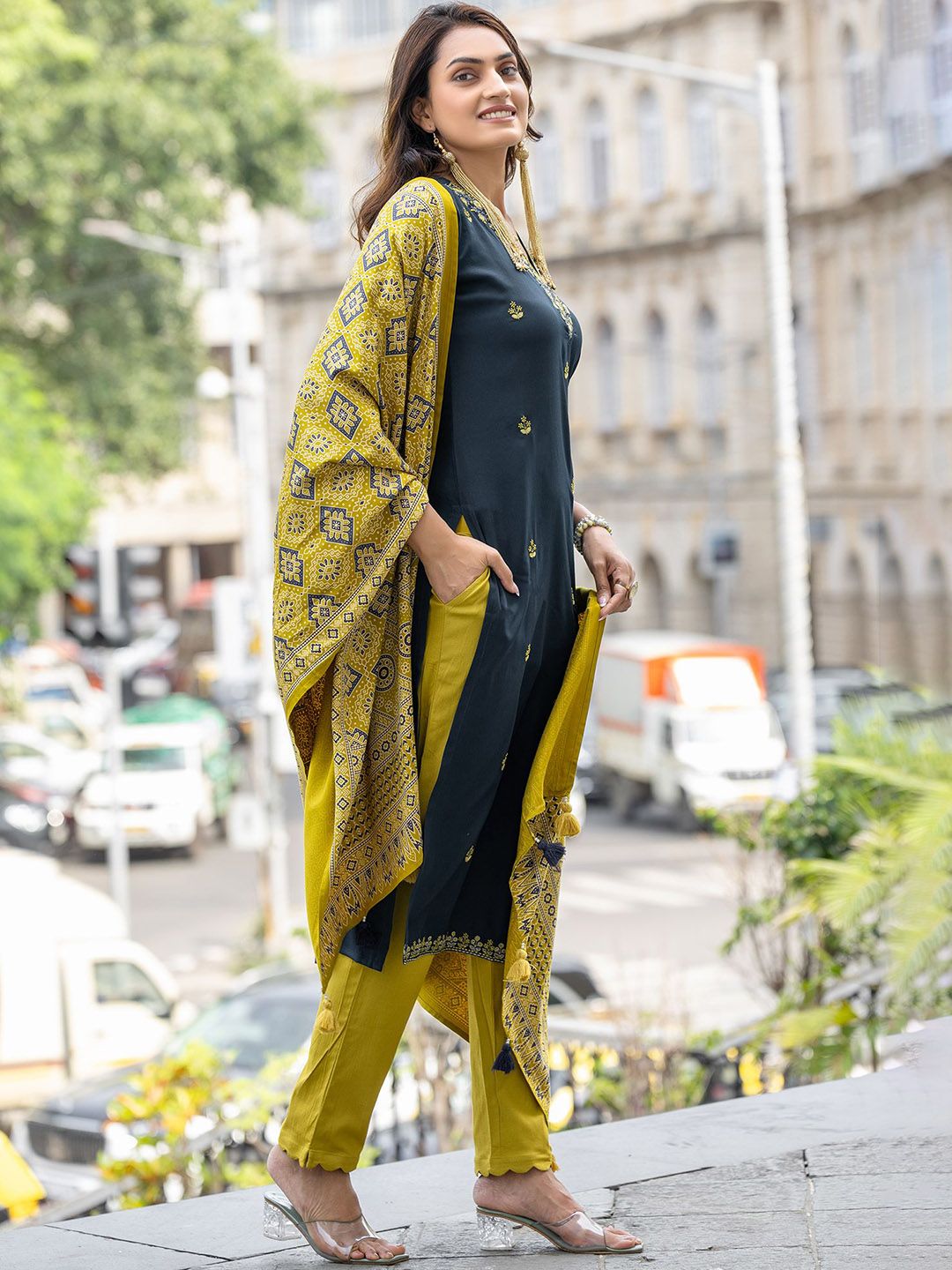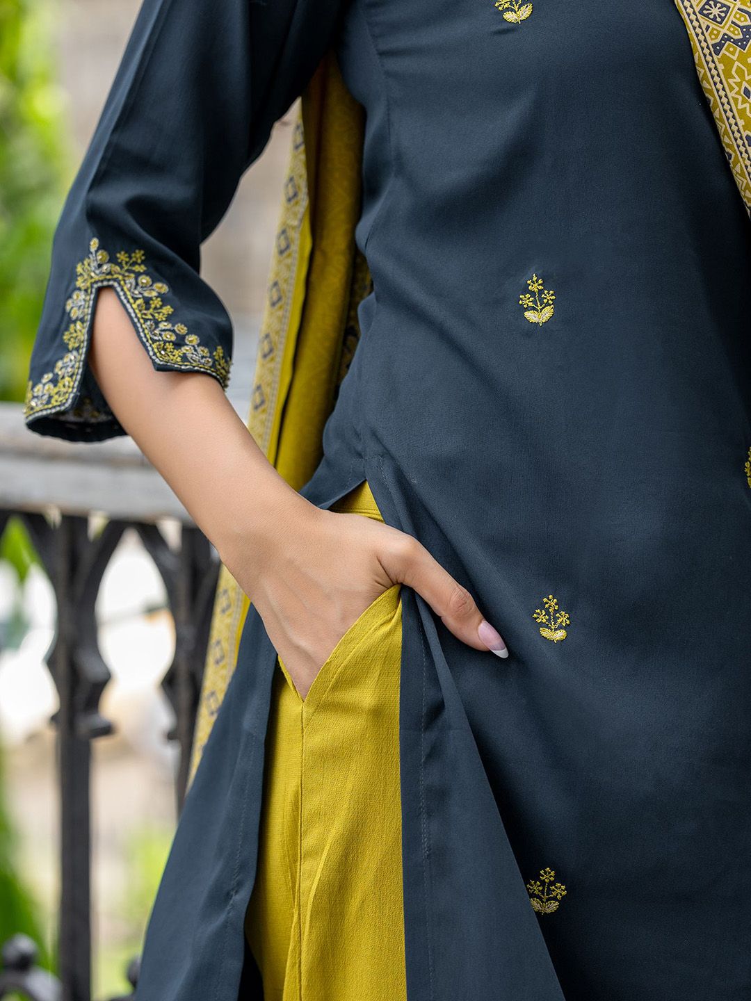 MITTOO Women Floral Embroidered Kurta with Trousers & Dupatta