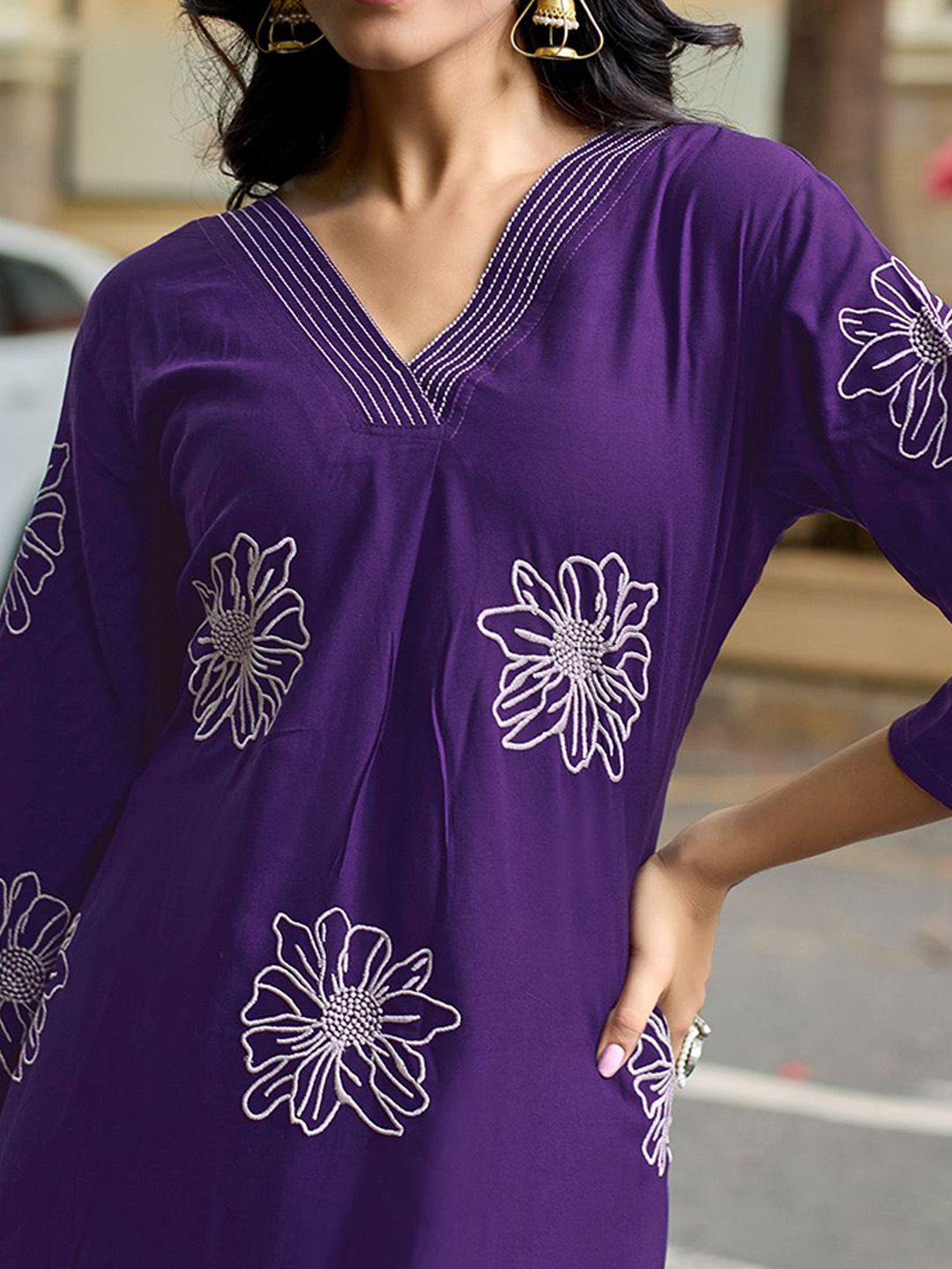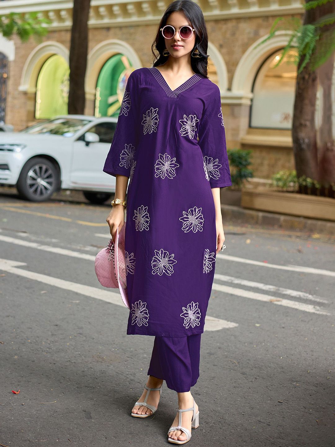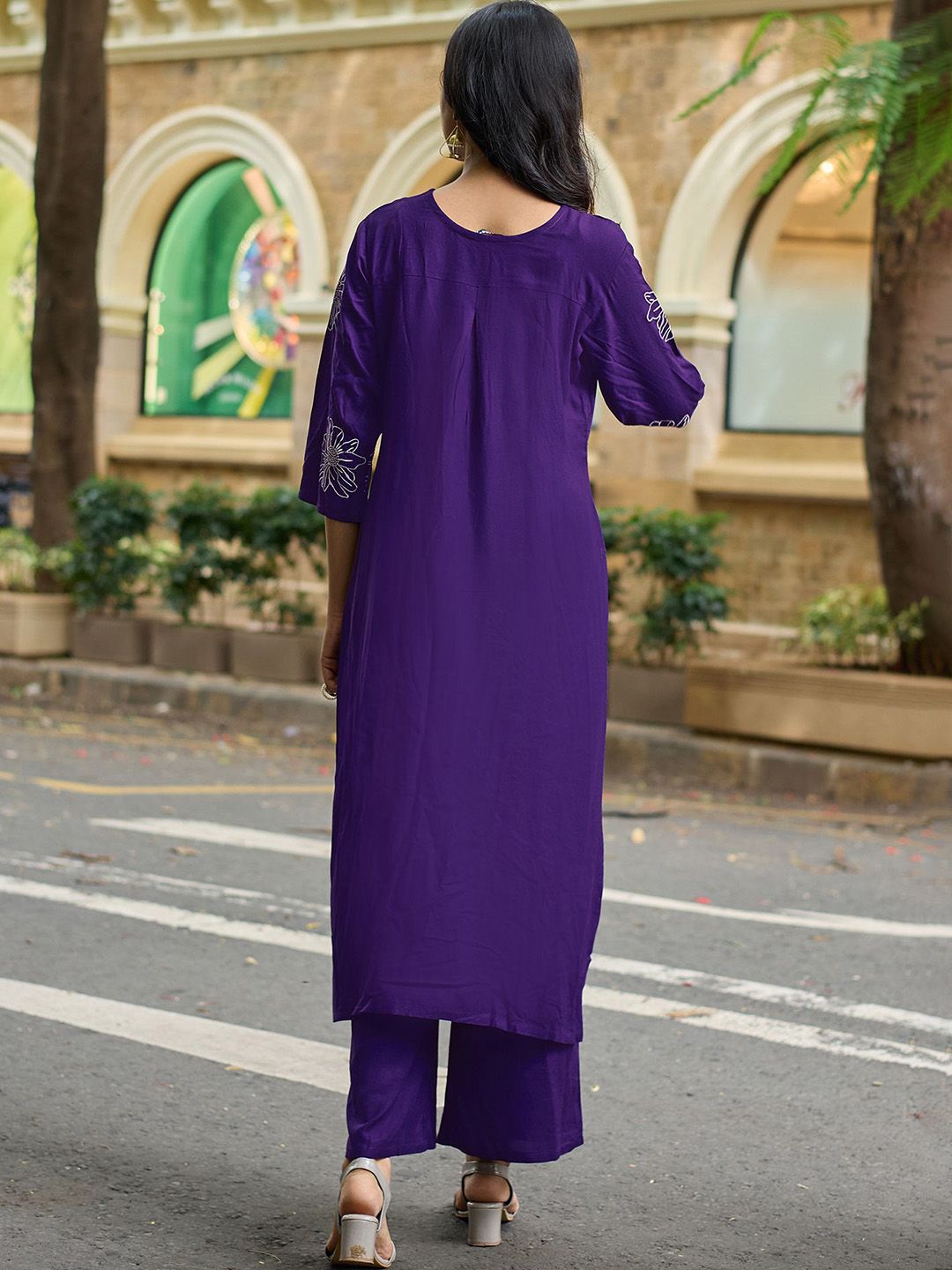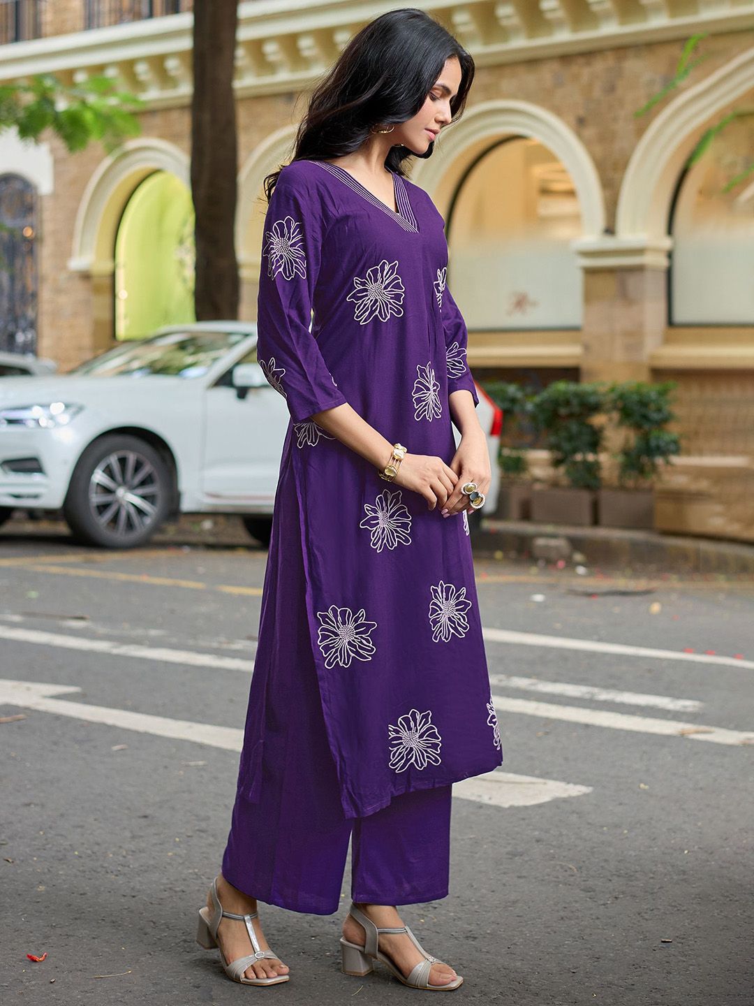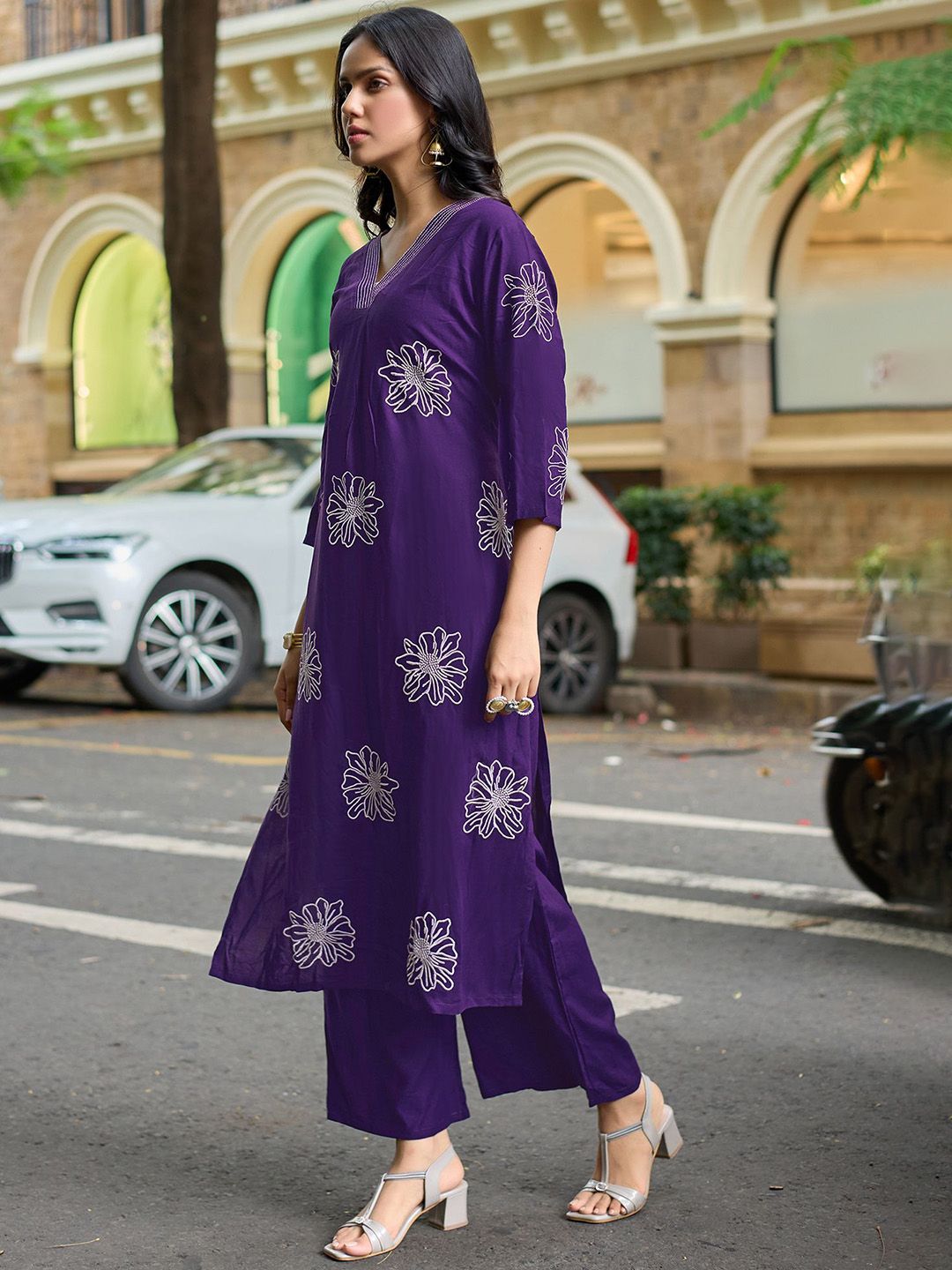 MITTOO Women Floral Embroidered Kurti with Palazzo