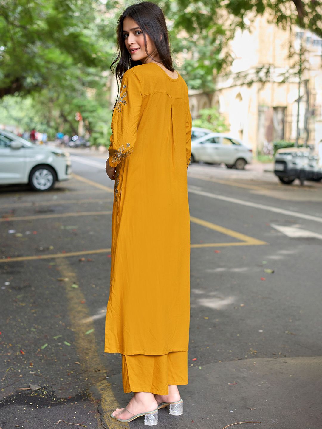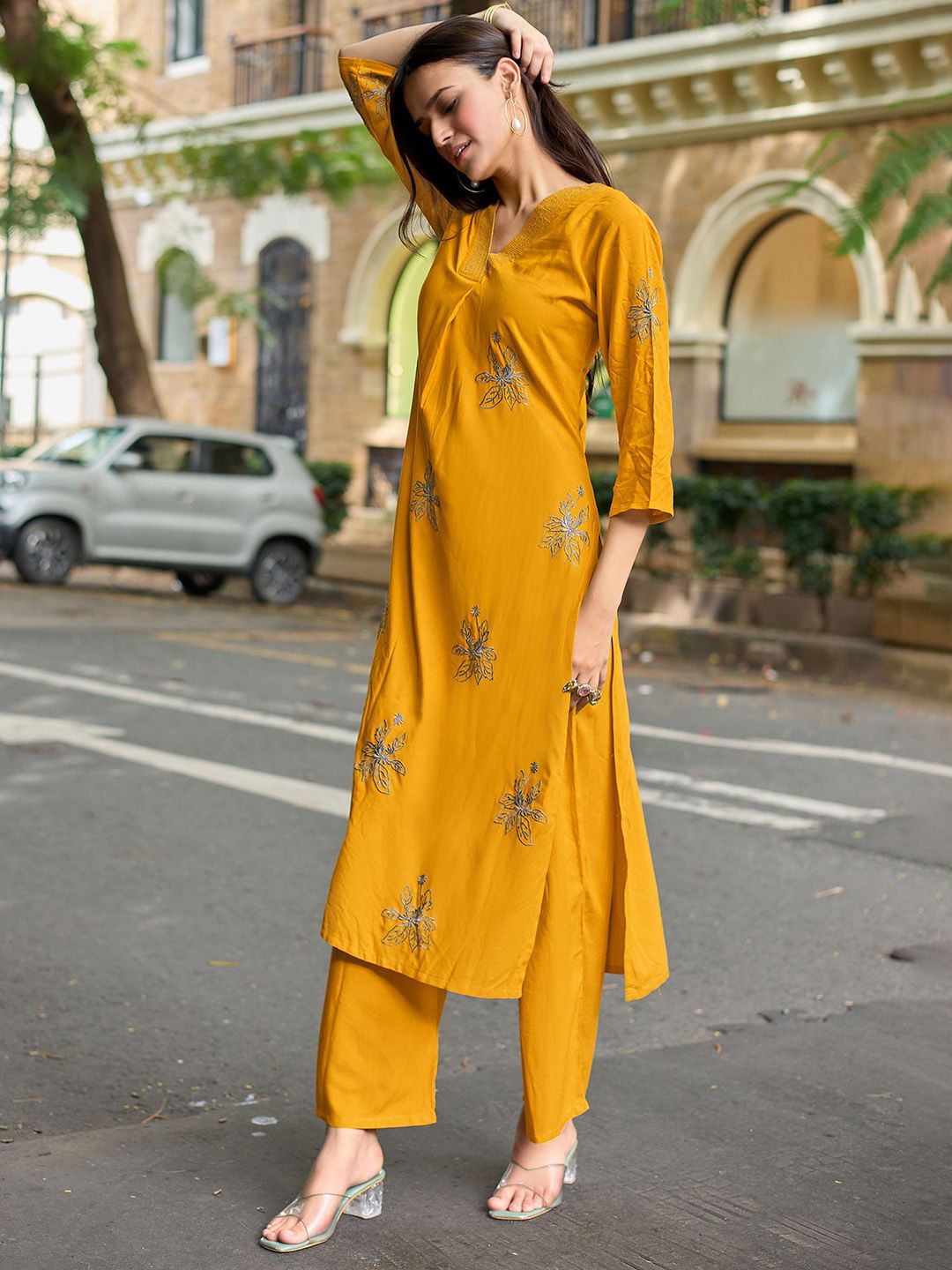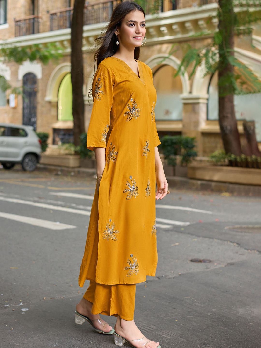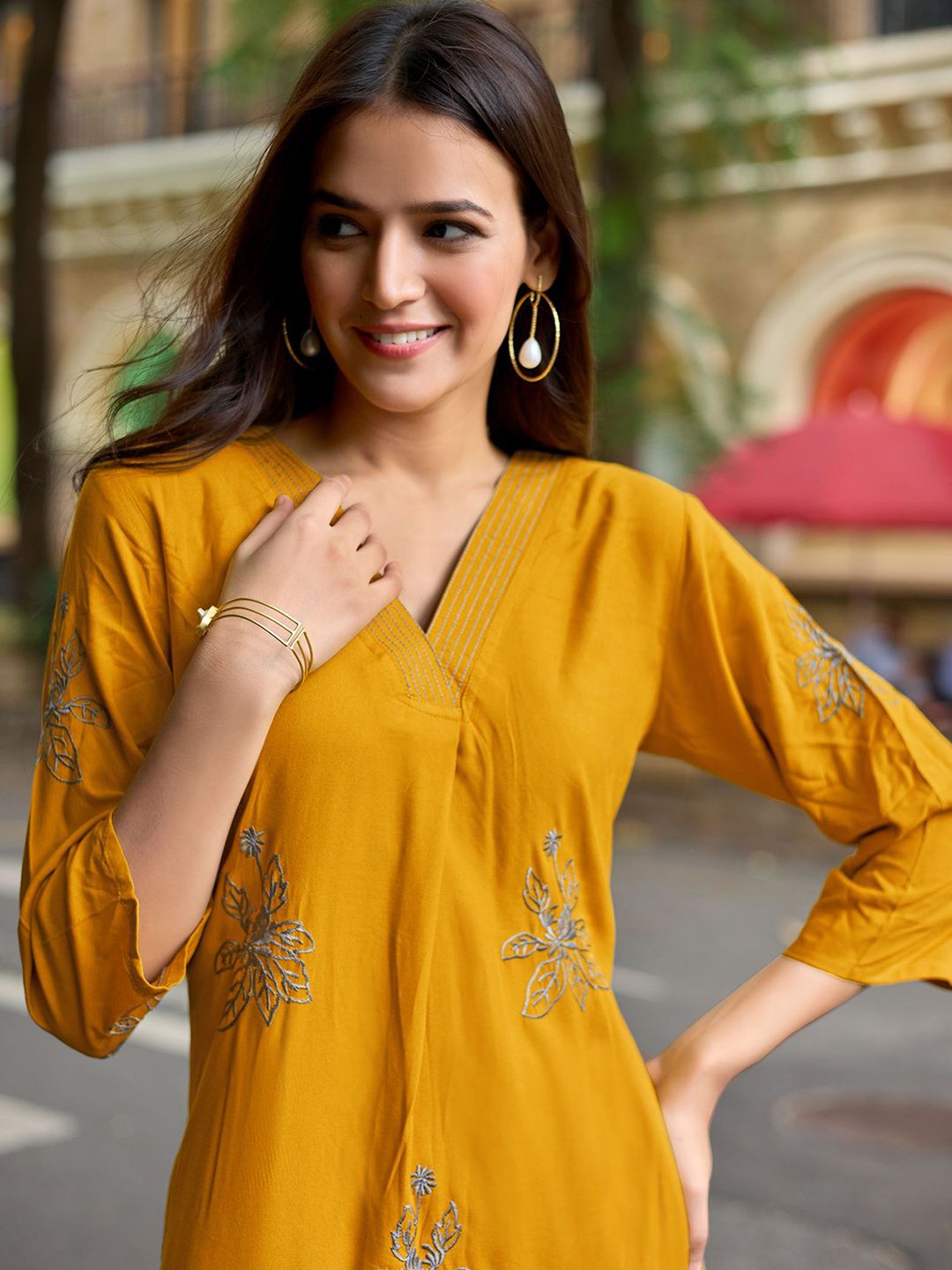 MITTOO Women Floral Embroidered Kurti with Trousers
