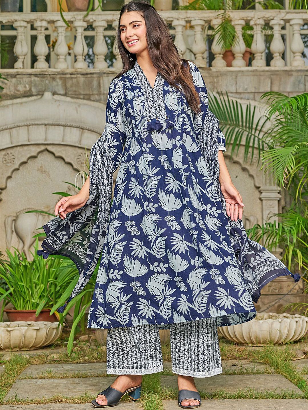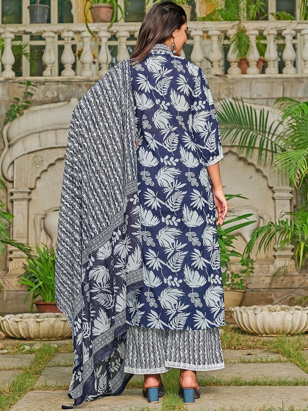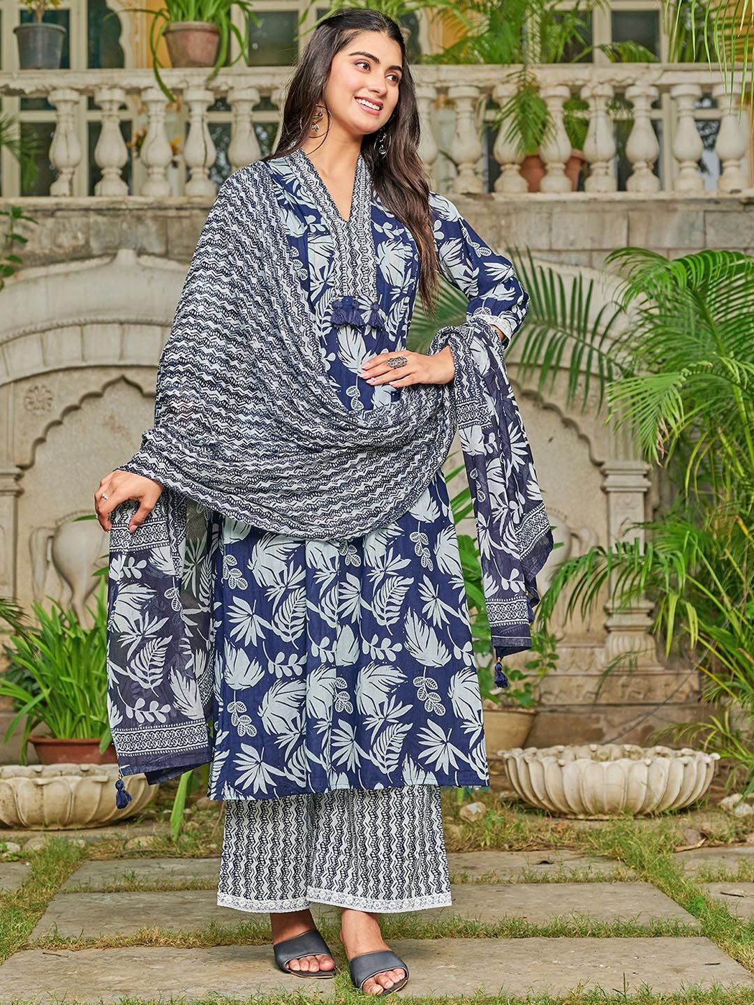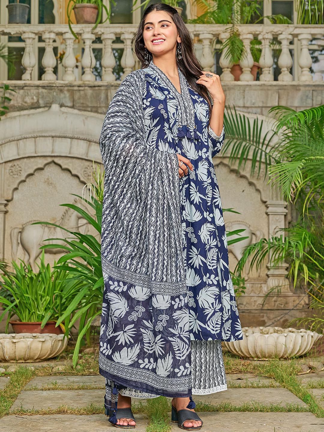 MITTOO Women Floral Printed Cotton Kurta with Palazzos & Dupatta
