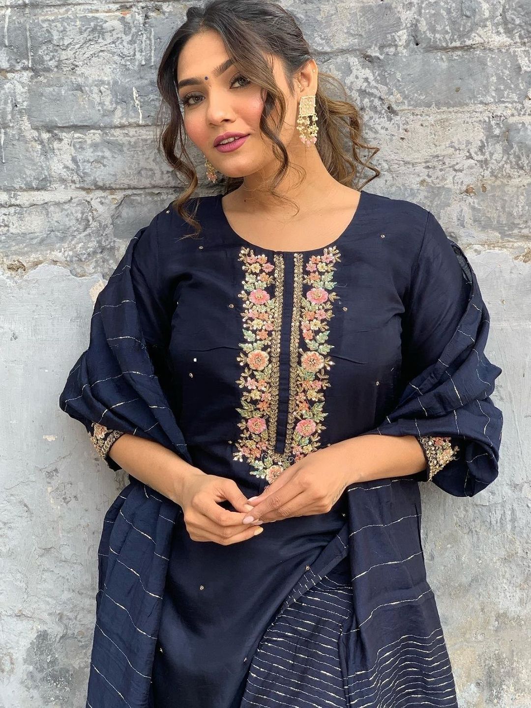 Buy this stylish Moda Rapido Embroidered Sequinned Chanderi Silk Straight Kurta With Trousers & Dupatta at Marincart Nepal. This product offers great quality and value. Perfect for those looking for the latest trends in fashion. Get yours now at unbeatable prices.