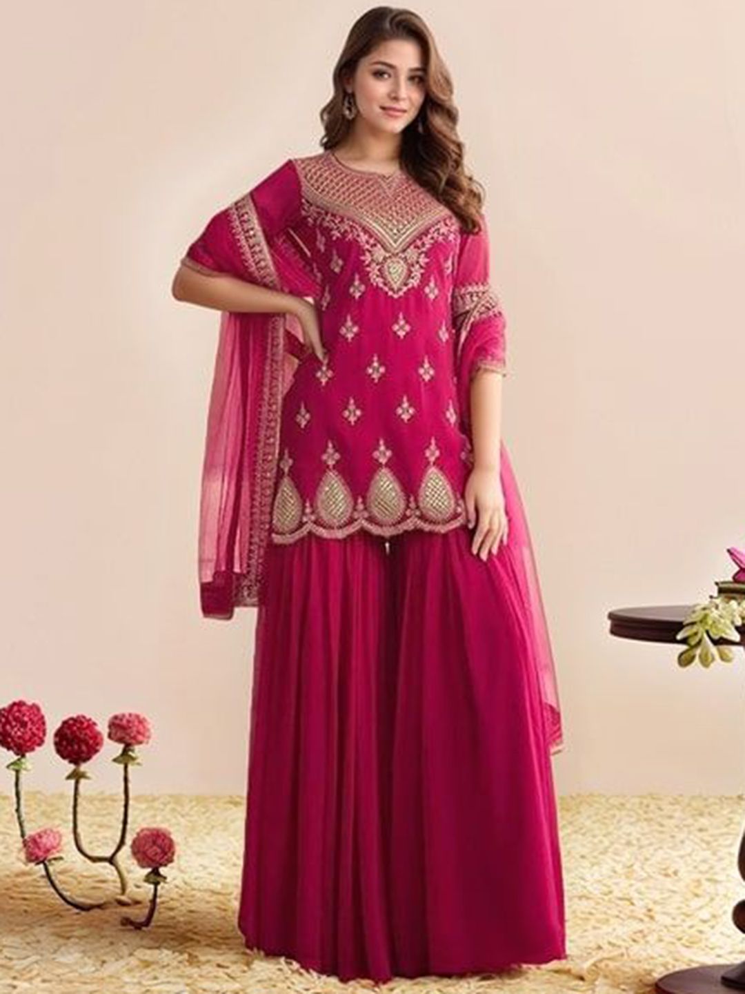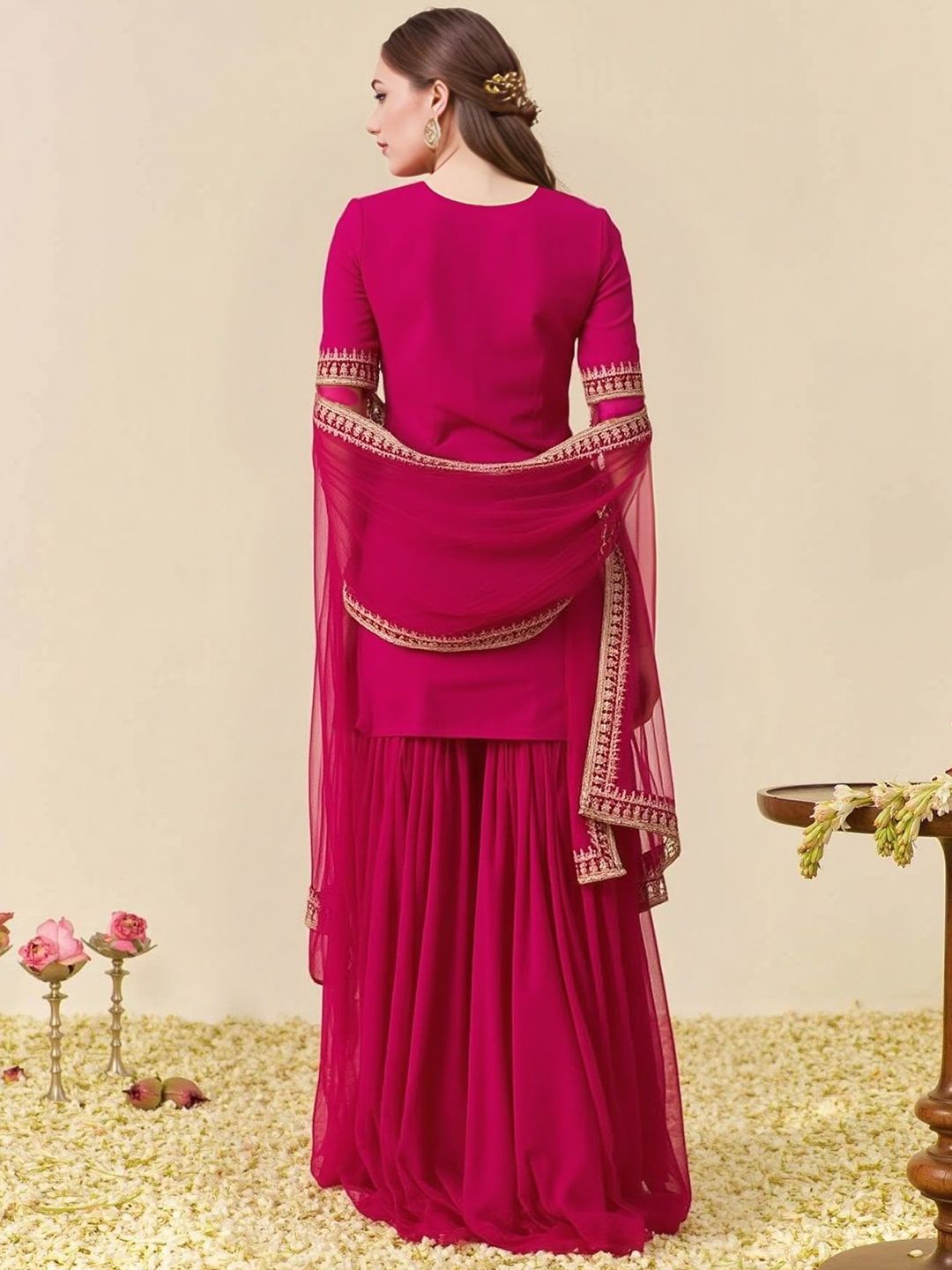 Moda Rapido Ethnic Motifs Embroidered Round Neck Sequinned Kurta With Sharara & Dupatta