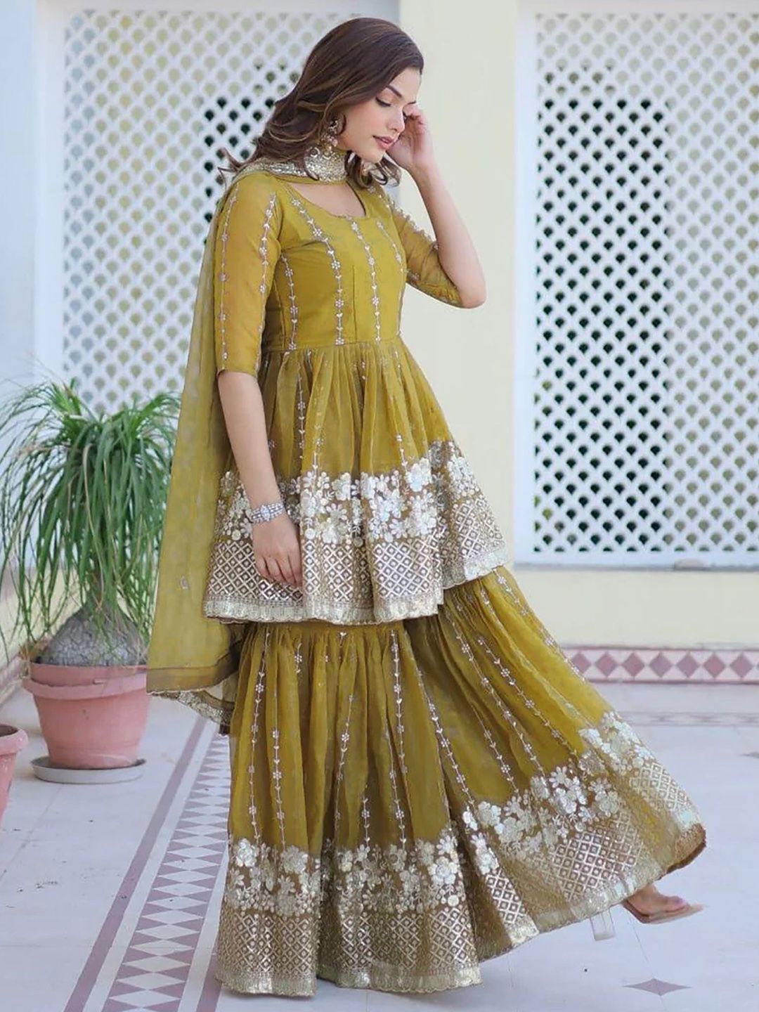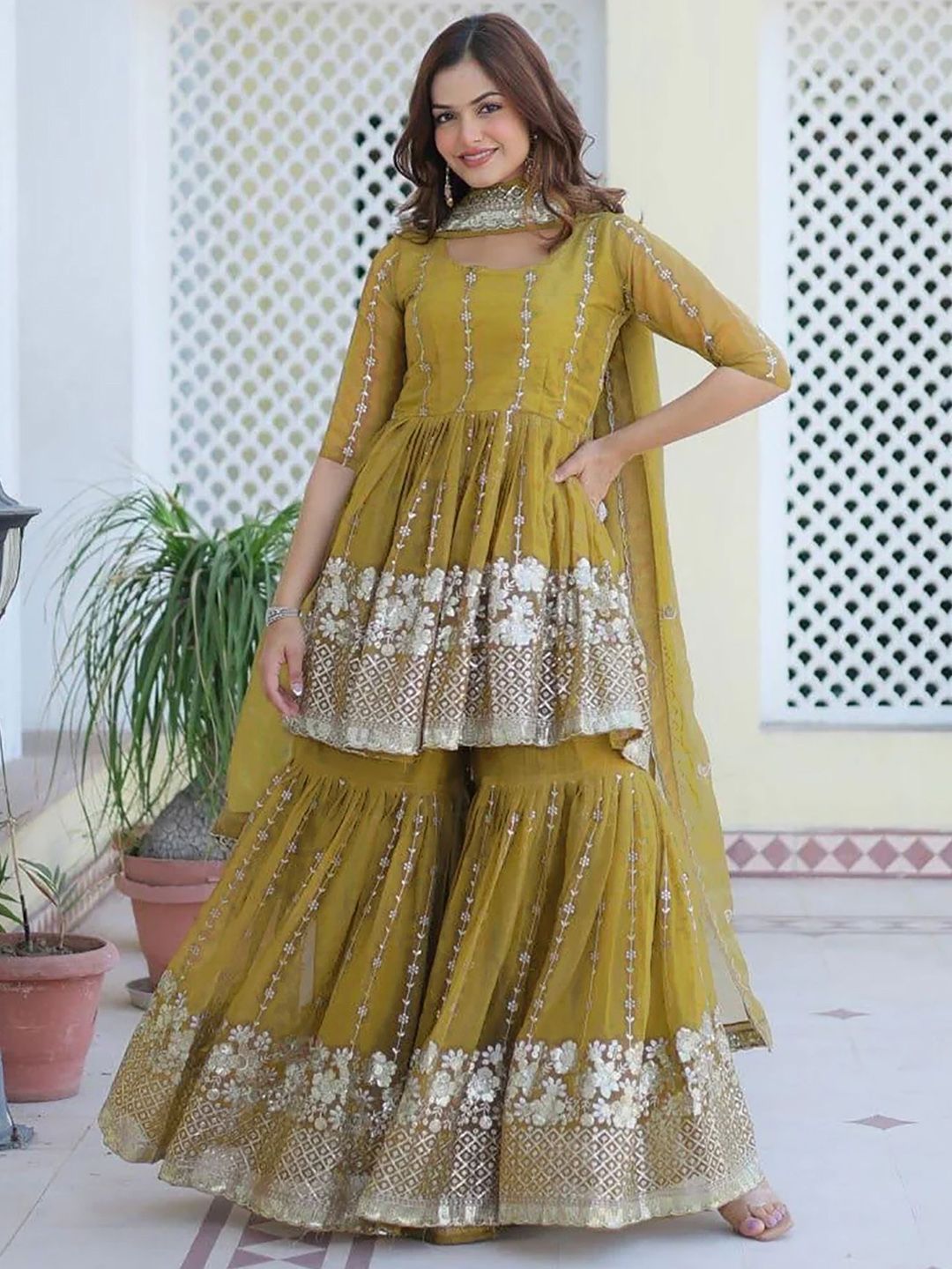 Moda Rapido Floral Embroidered Sequinned Georgette Anarkali Kurta With Sharara & Dupatta