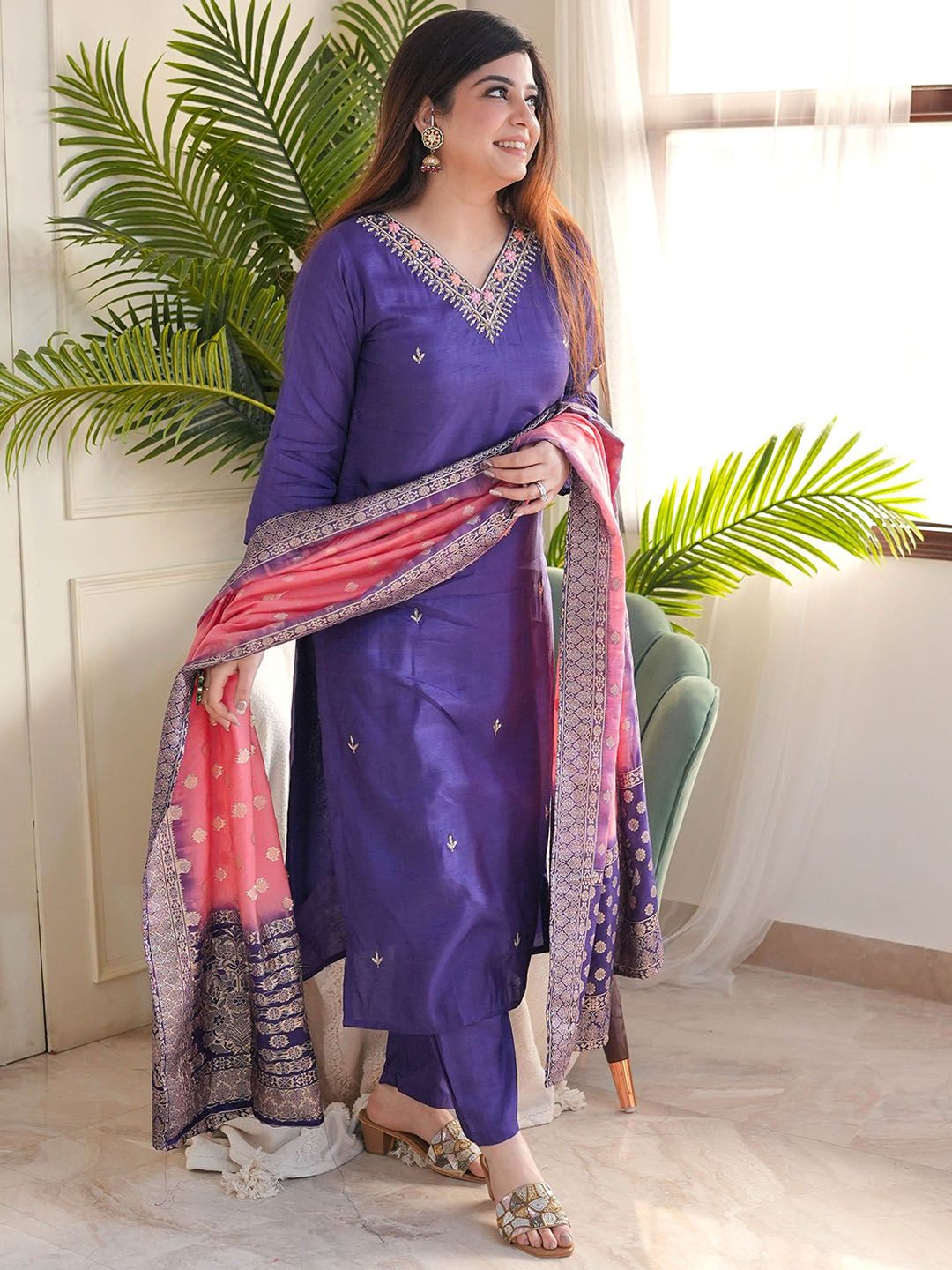 Buy this stylish Moda Rapido Floral Embroidered Thread Work Chanderi Silk Kurta With Trousers & Dupatta at Marincart Nepal. This product offers great quality and value. Perfect for those looking for the latest trends in fashion. Get yours now at unbeatable prices.