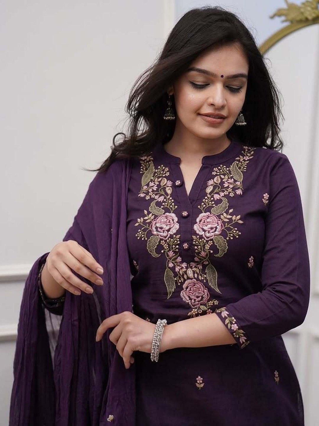Moda Rapido Floral Embroidered Thread Work Kurta With Trousers & Dupatta