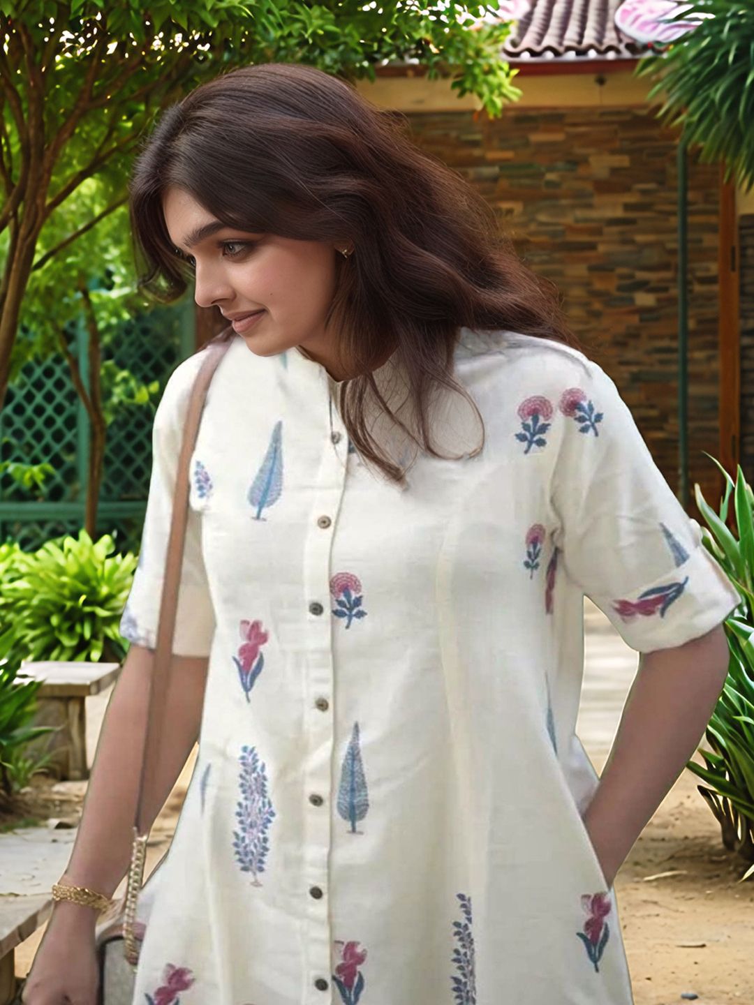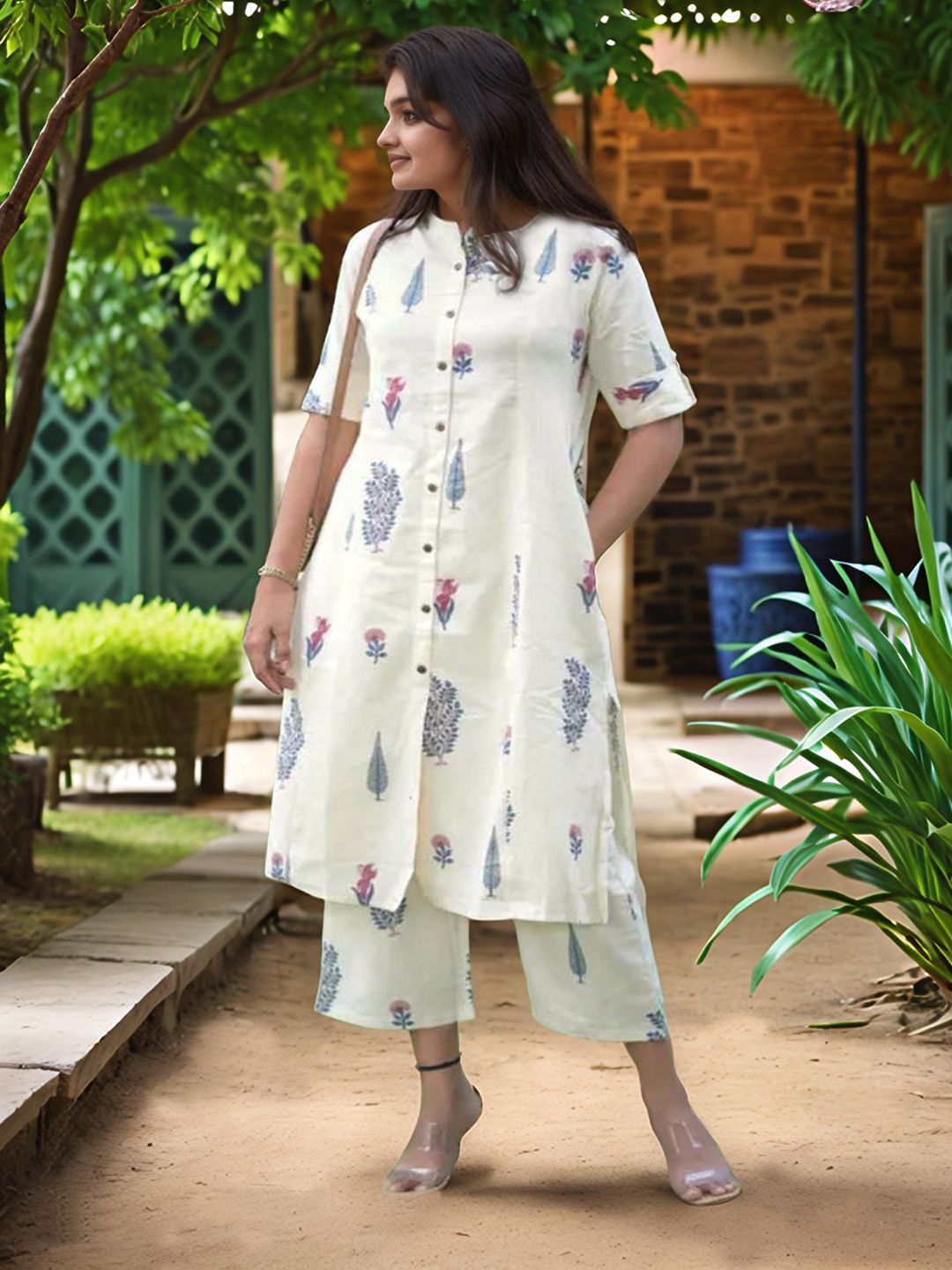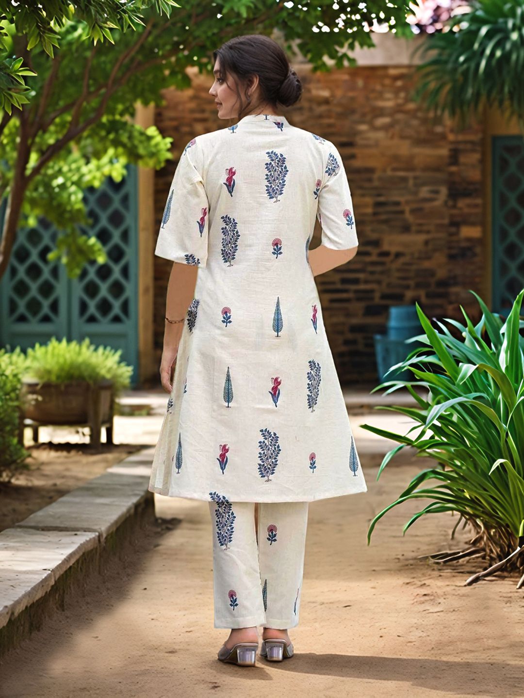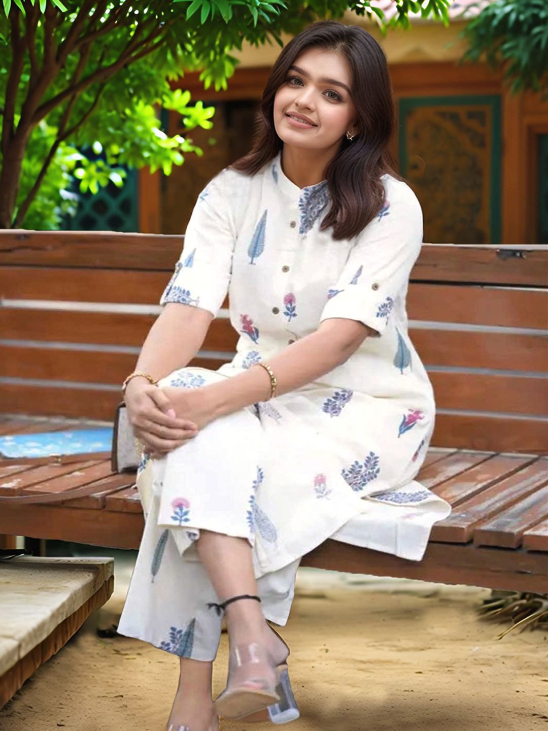 Moda Rapido Floral Printed Mandarin Collar Kurta With Trousers