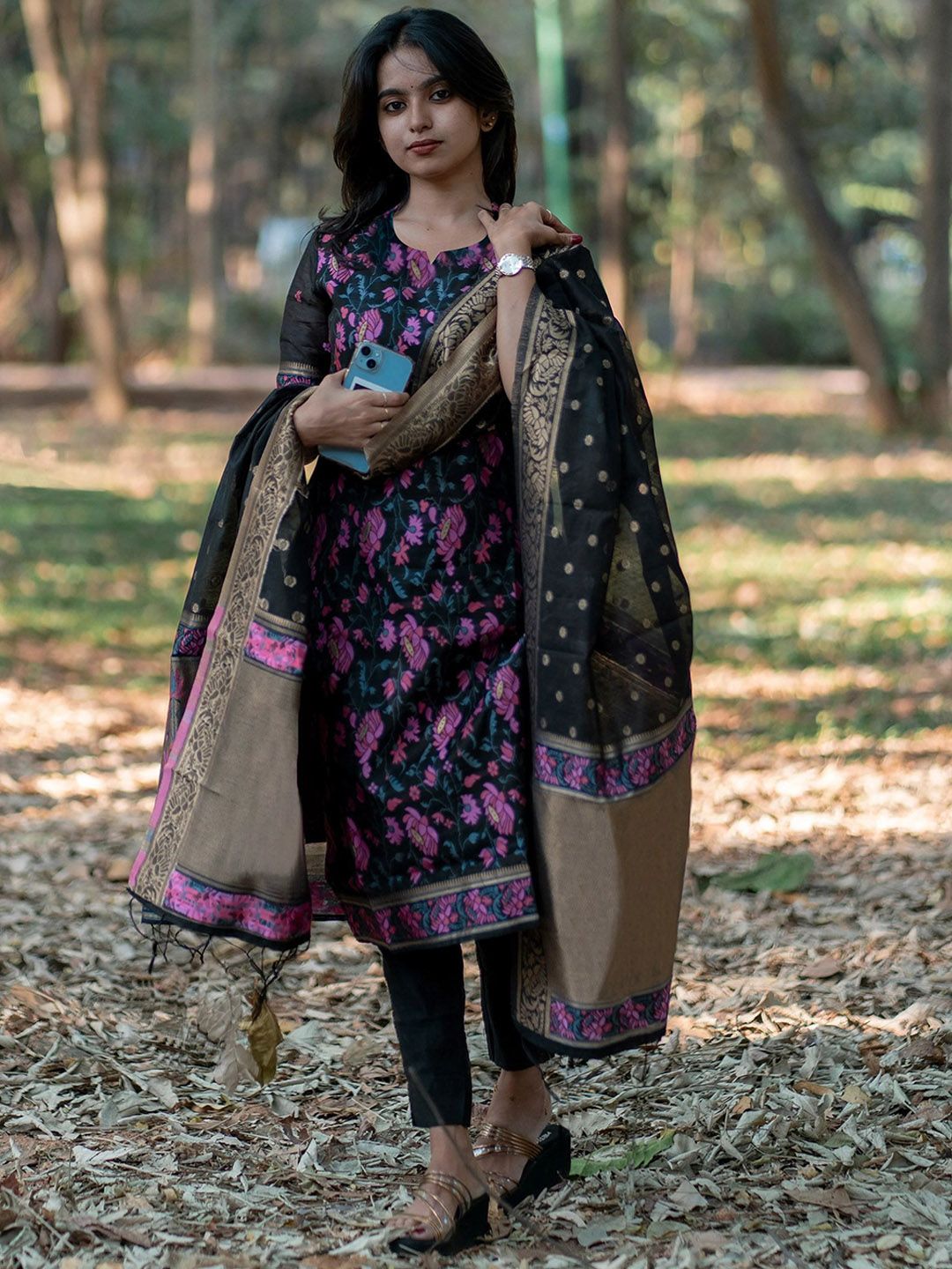 Moda Rapido Floral Printed Straight Kurta With Trousers & Dupatta