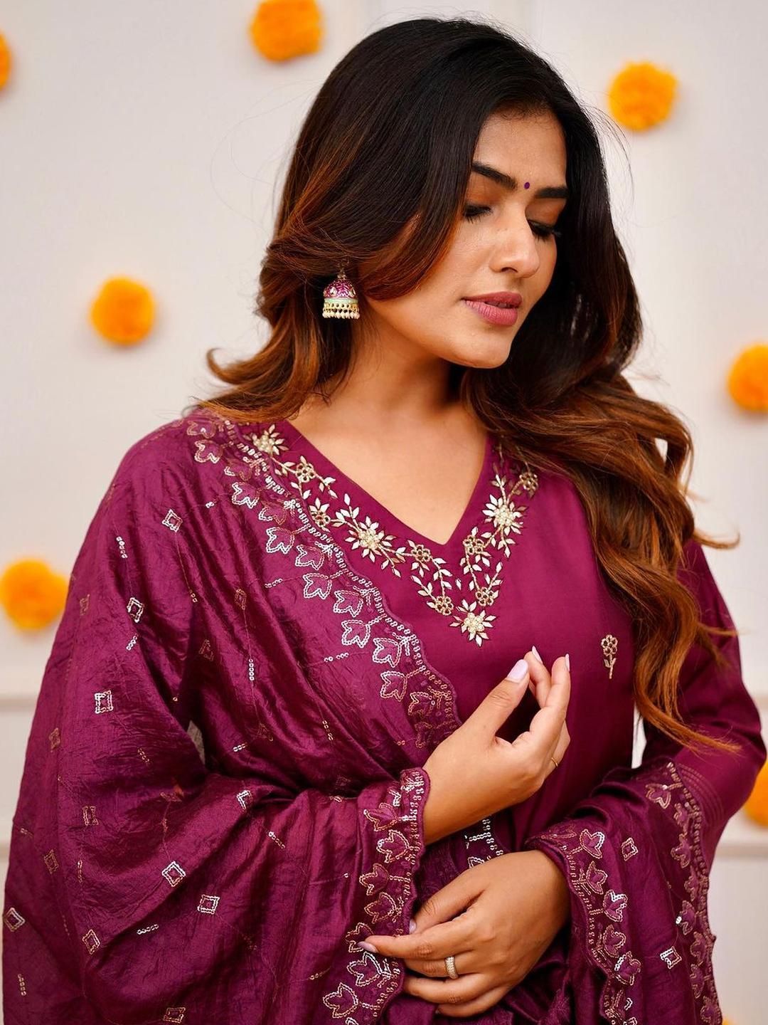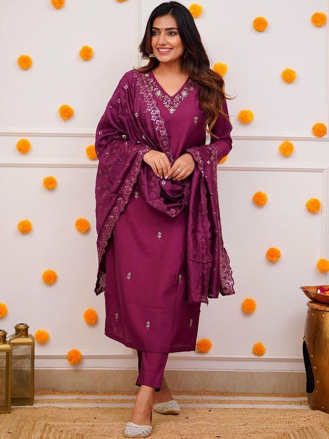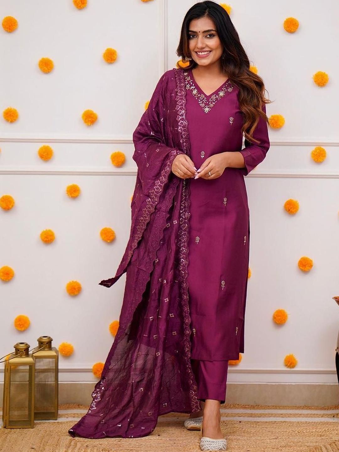 Moda Rapido Floral Printed V-Neck Kurta with Trousers & With Dupatta