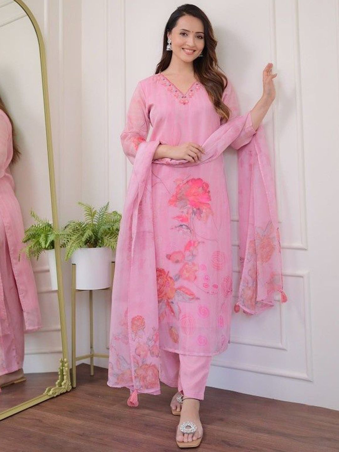 Buy this stylish Moda Rapido Floral Printed V-Neck Organza Straight Kurta With Trousers & Dupatta at Marincart Nepal. This product offers great quality and value. Perfect for those looking for the latest trends in fashion. Get yours now at unbeatable prices.