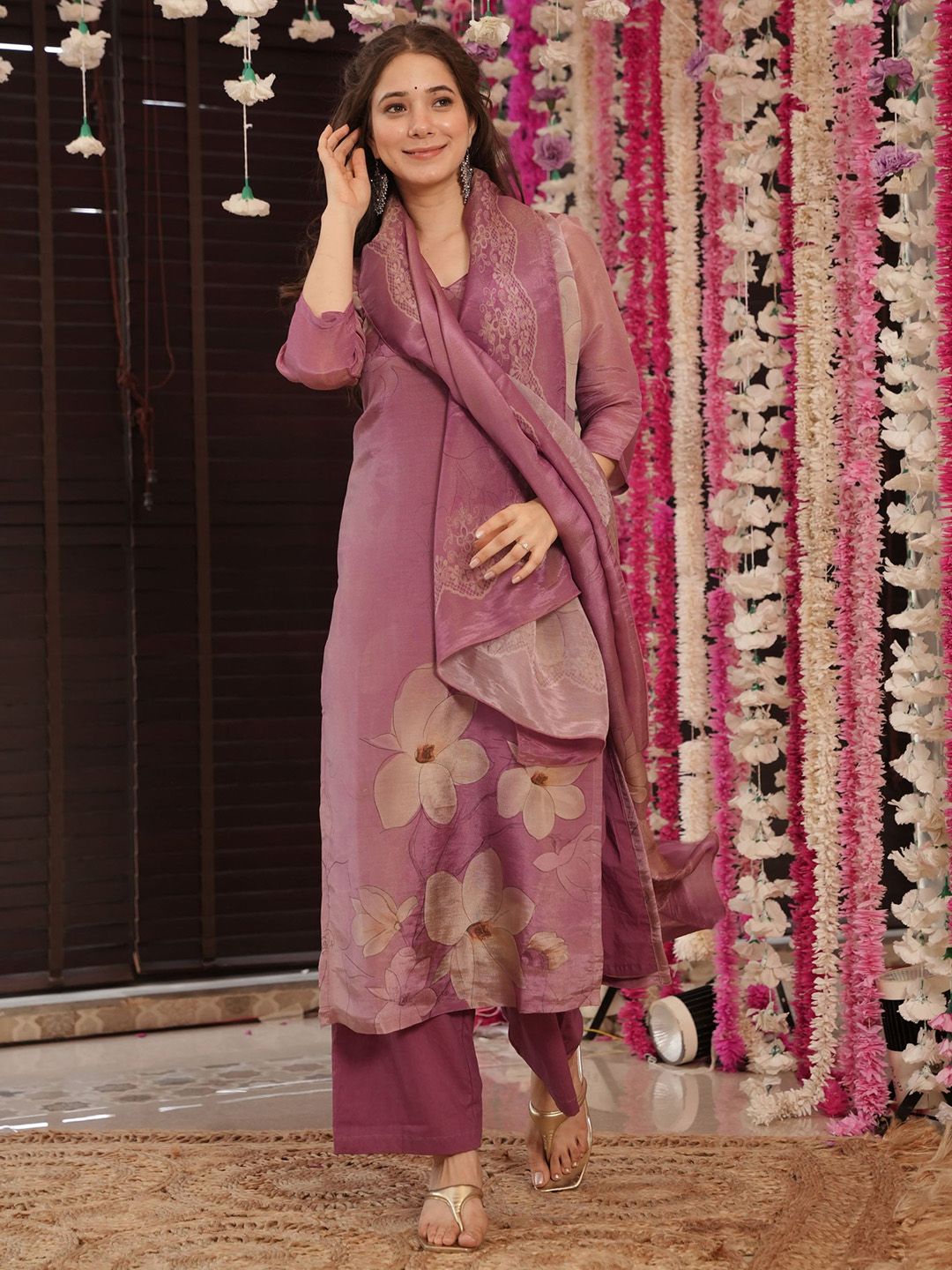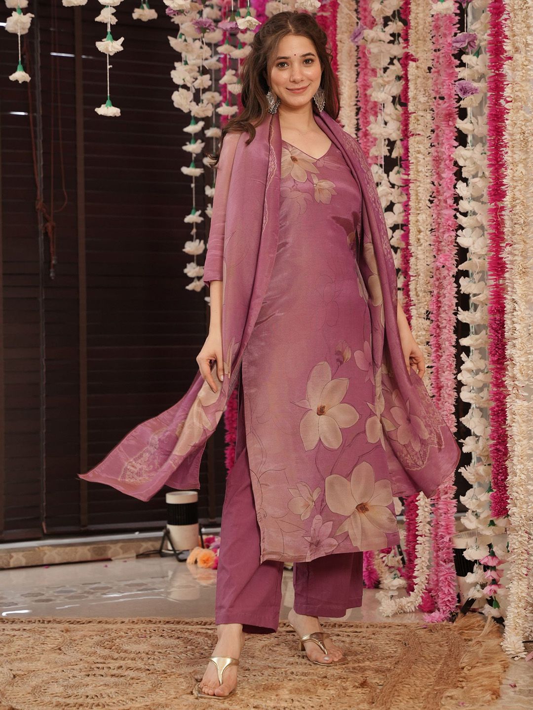 Moda Rapido Floral Printed V-Neck Straight Kurta With Trousers And Dupatta