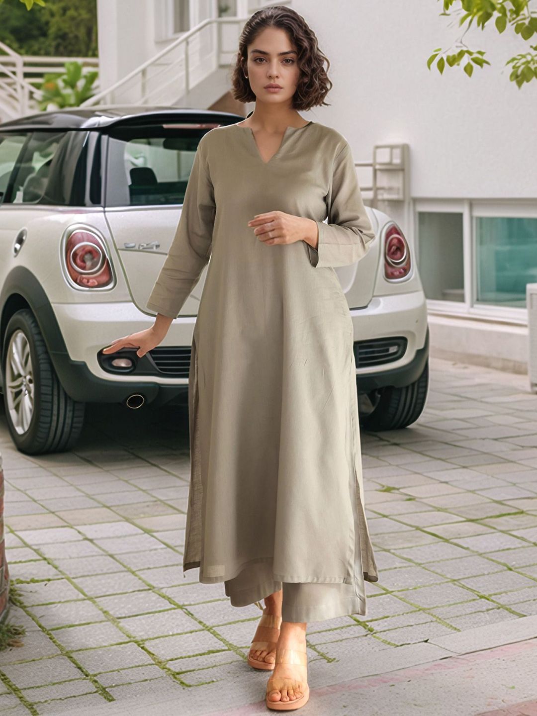 Moda Rapido Notch Neck Straight Kurta With Trousers & Dupatta