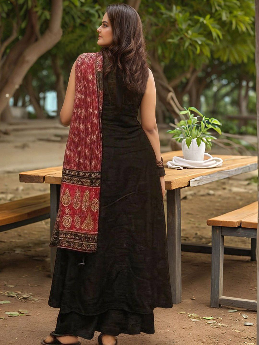 Moda Rapido Round Neck Anarkali Kurta With Palazzos & Dupatta