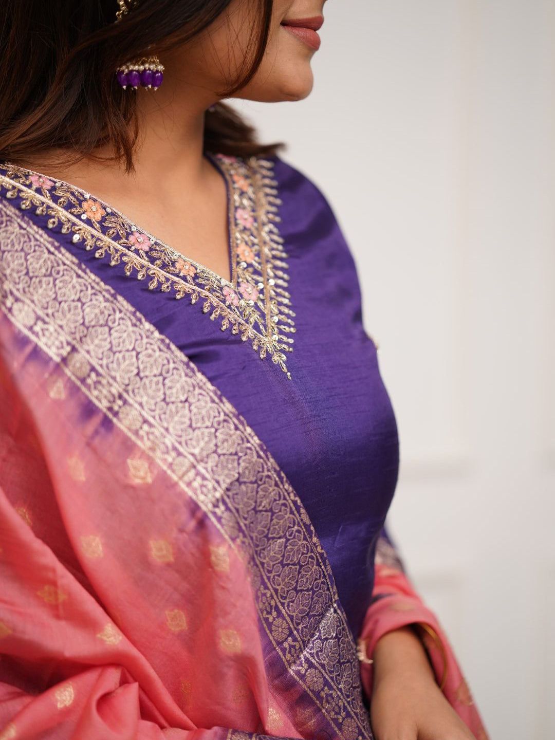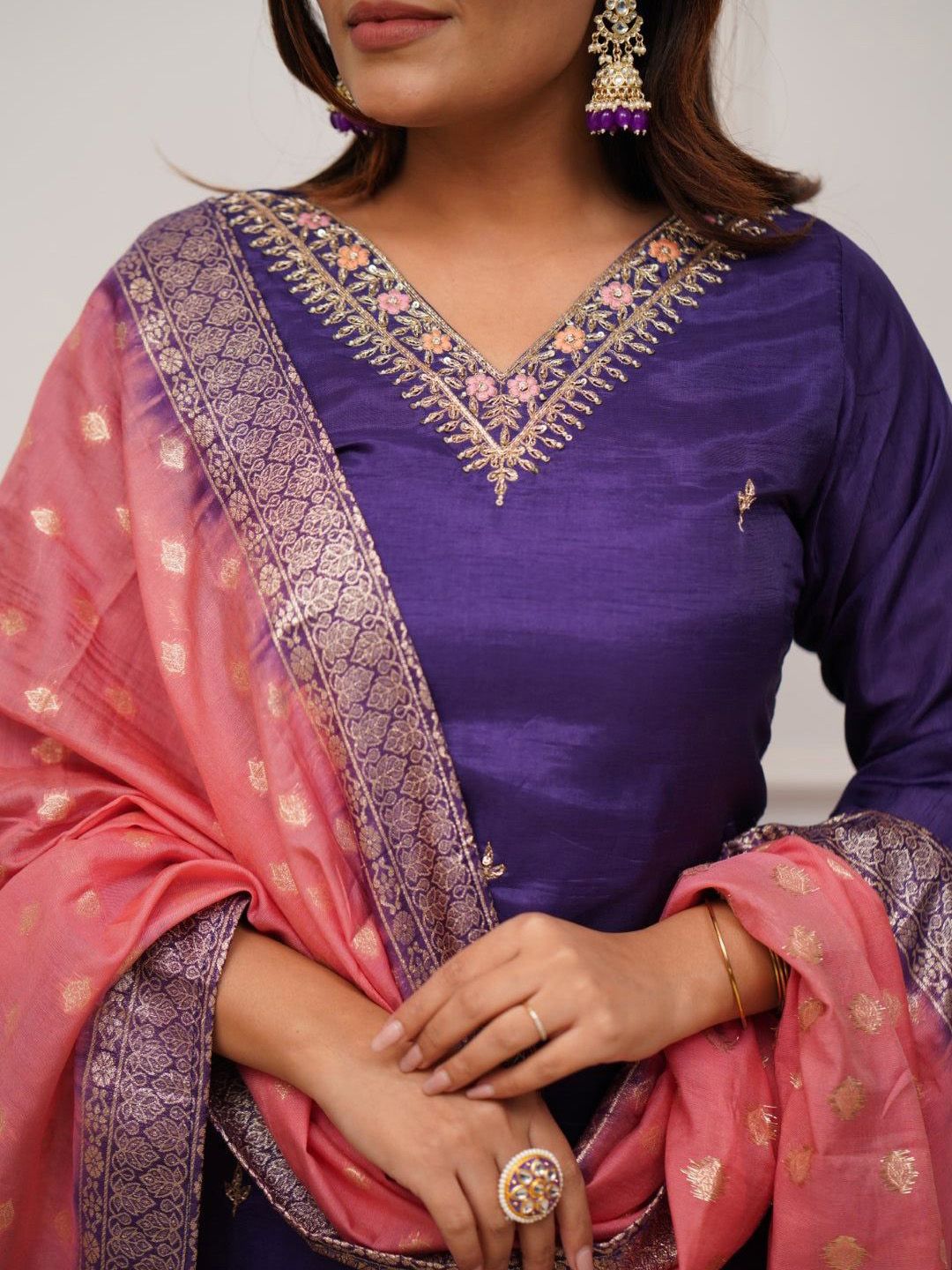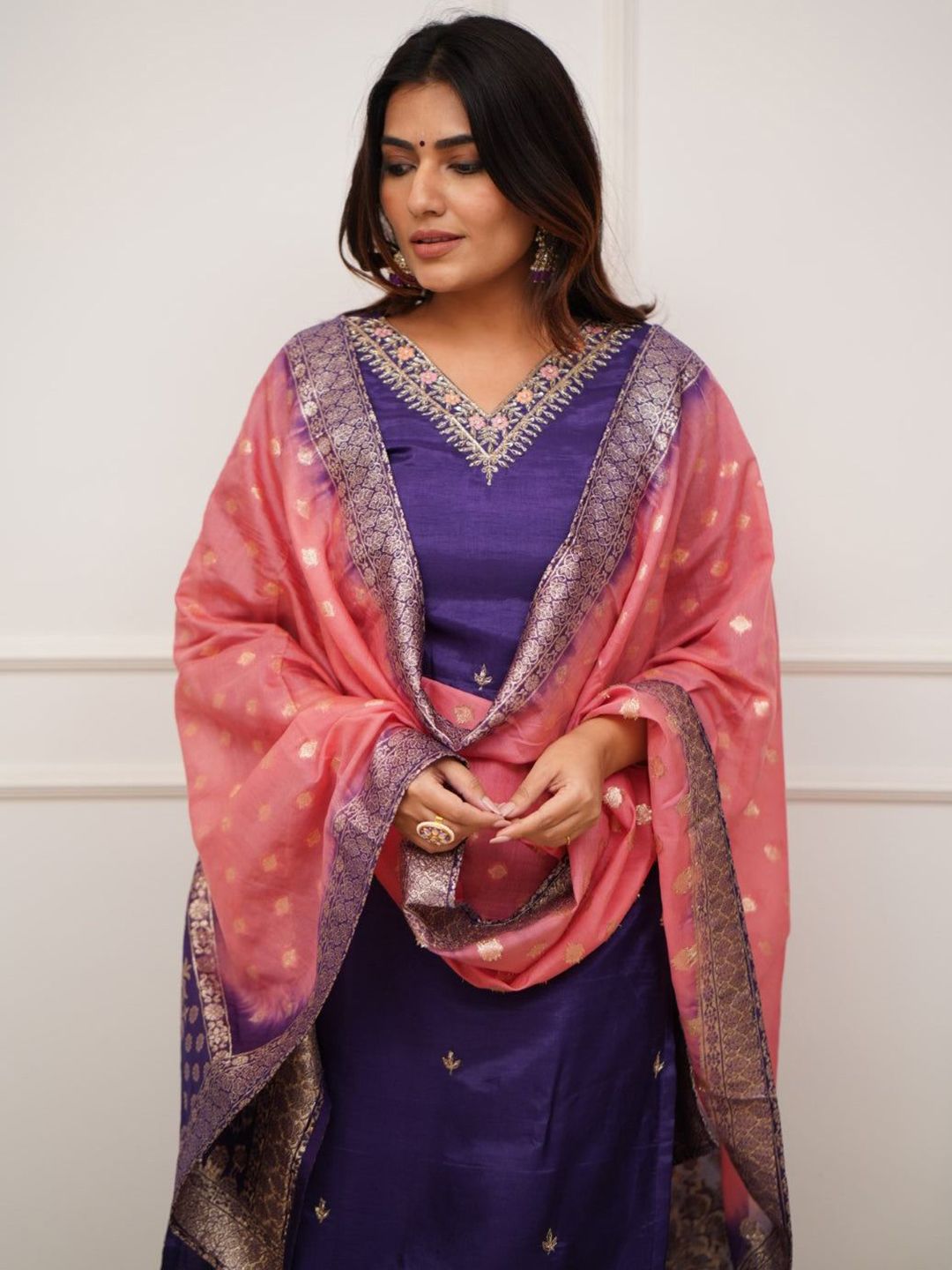 Moda Rapido Women Embroidered Thread Work Chanderi Silk Kurta & Trousers With Dupatta