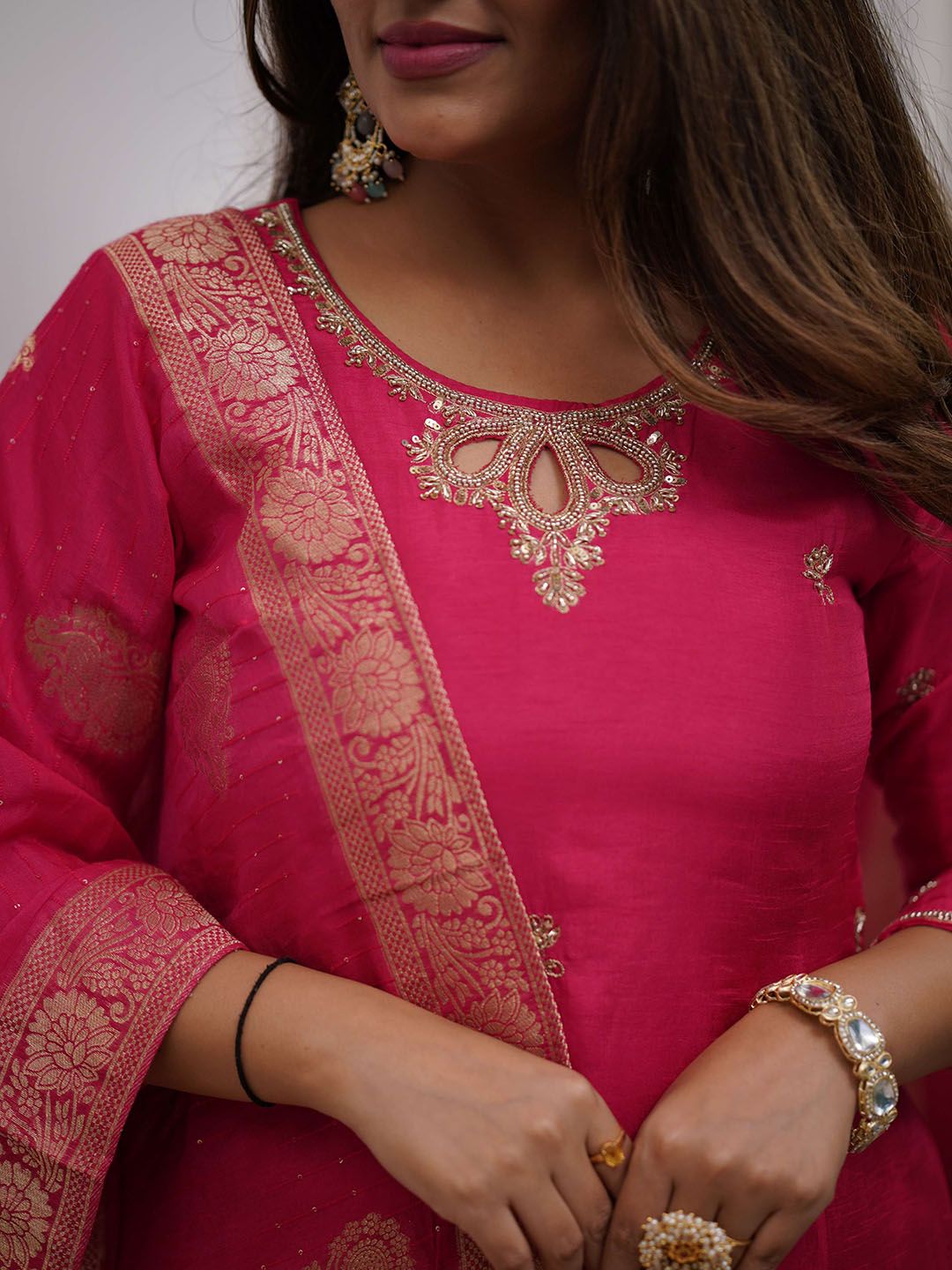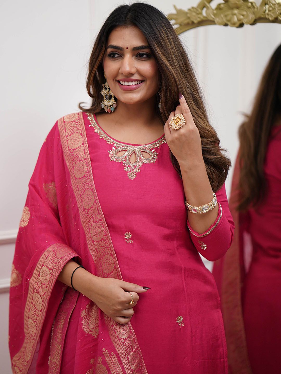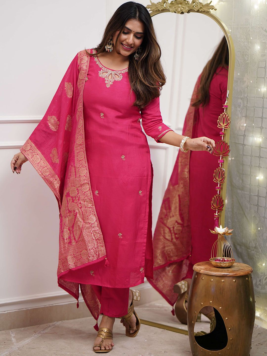 Moda Rapido Women Ethnic Motif Embroidered Beads and Stones Kurta with Trousers & Dupatta
