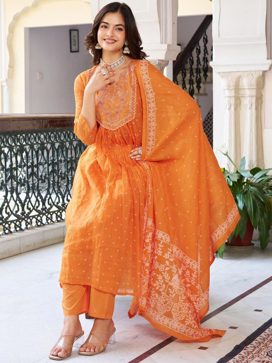 Moda Rapido Women Ethnic Motifs Embroidered Cotton Kurta with Trousers & Dupatta