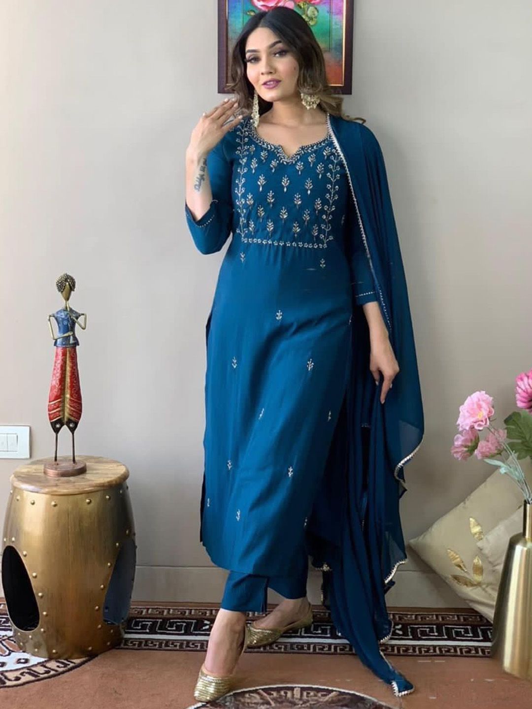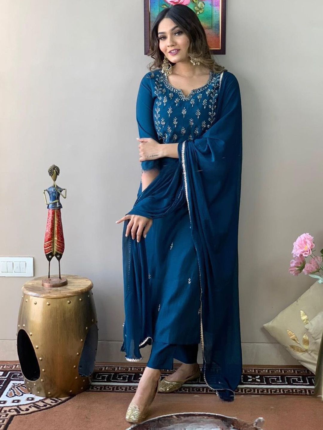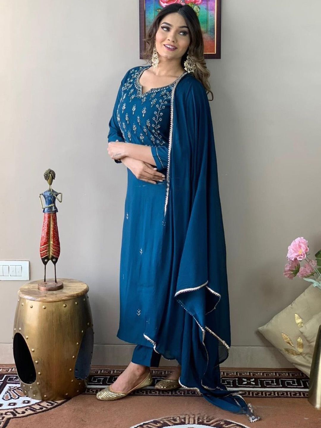 Moda Rapido Women Ethnic Motifs Embroidered Kurta with Trousers & With Dupatta