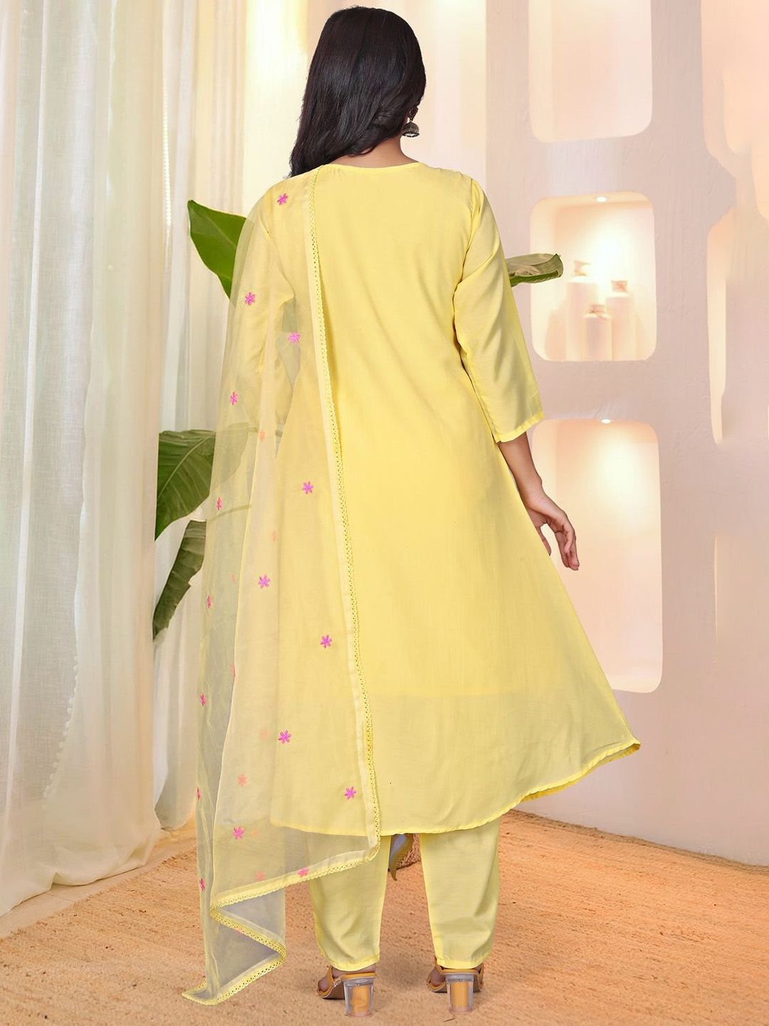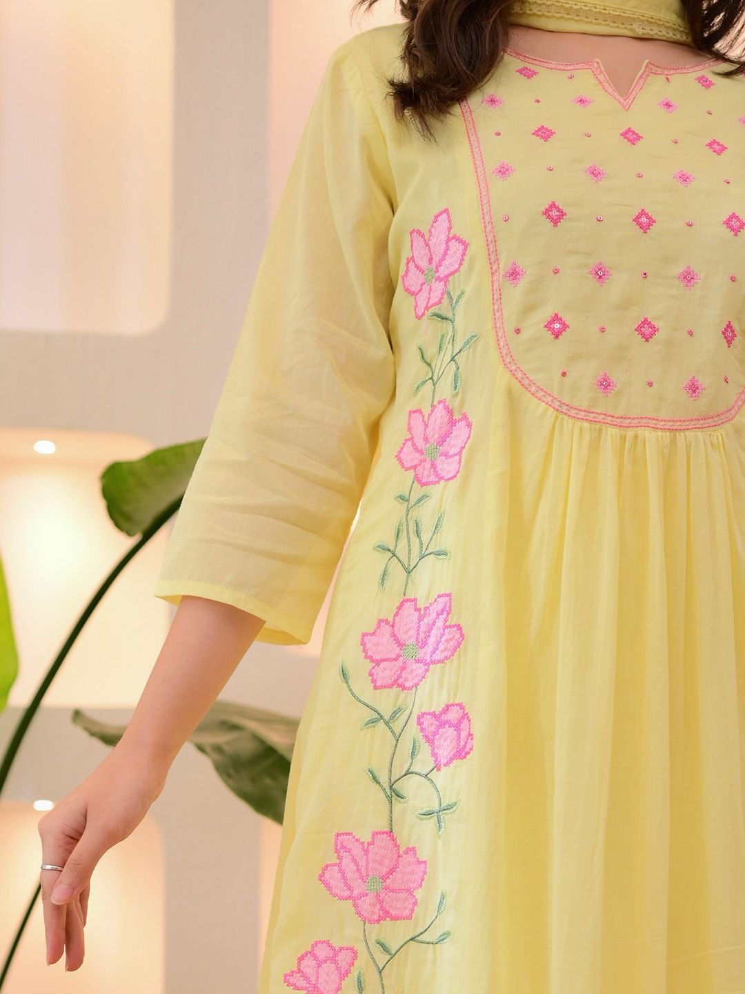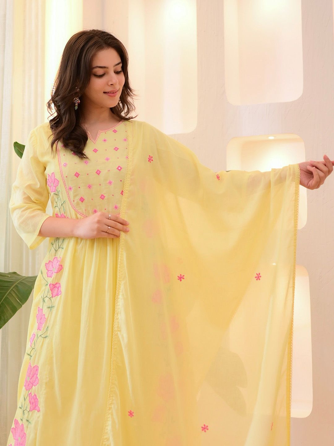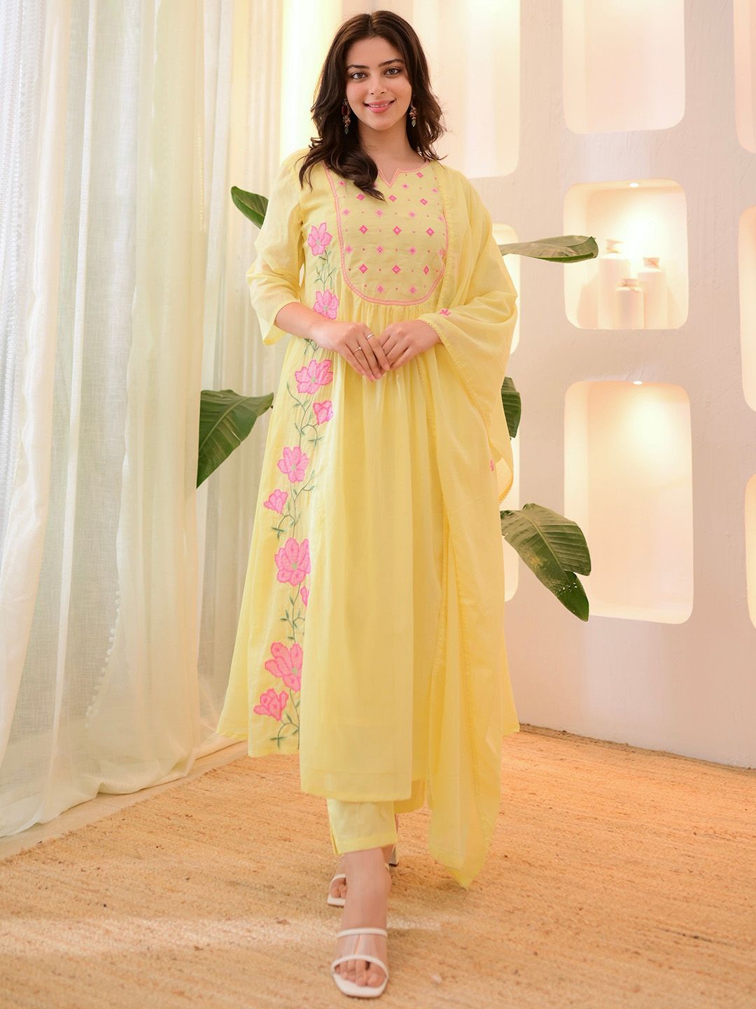 Moda Rapido Women Floral Embroidered A-Line Kurta with Trouser & Dupatta