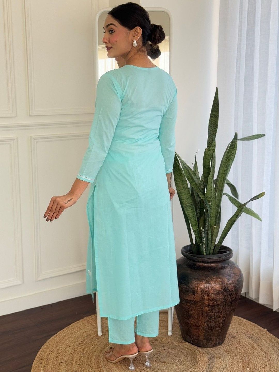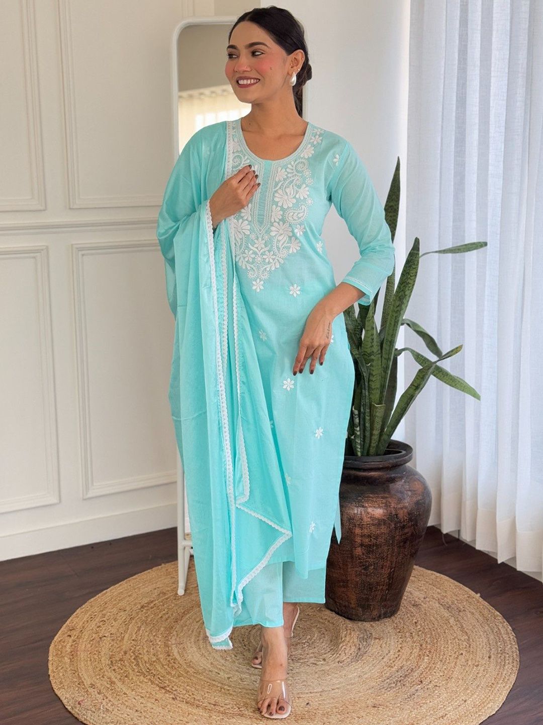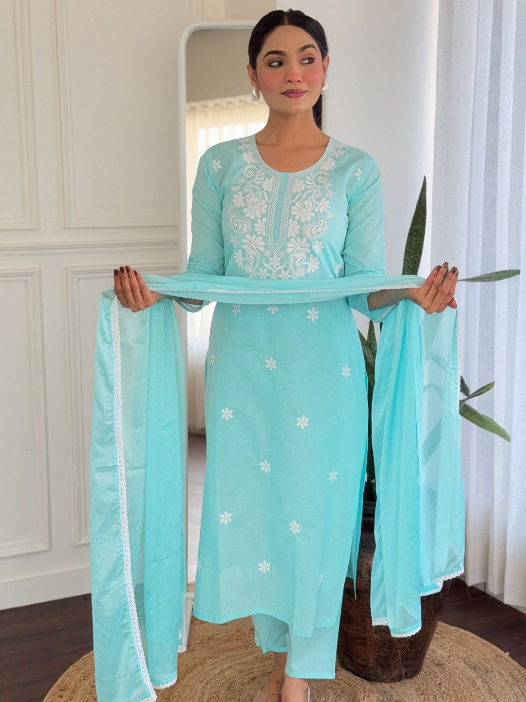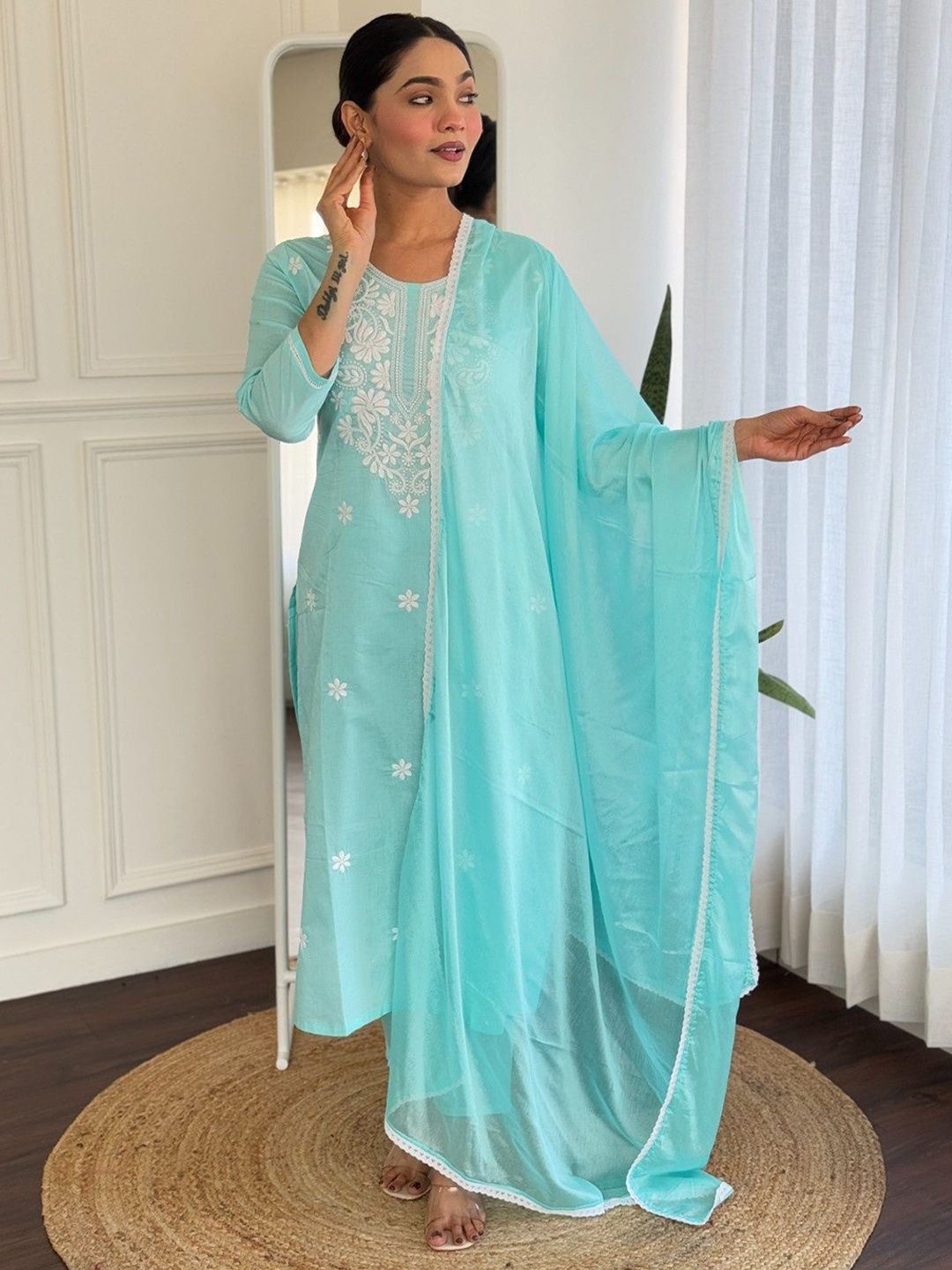 Moda Rapido Women Floral Embroidered Chikankari Kurta with Trousers & With Dupatta
