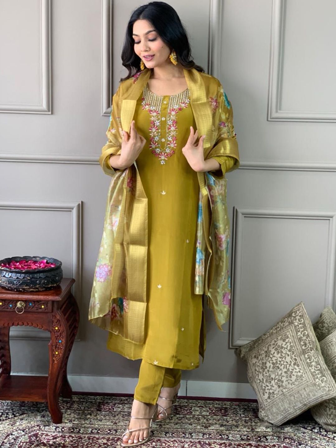 Moda Rapido Women Floral Embroidered Kurta with Trousers & Dupatta
