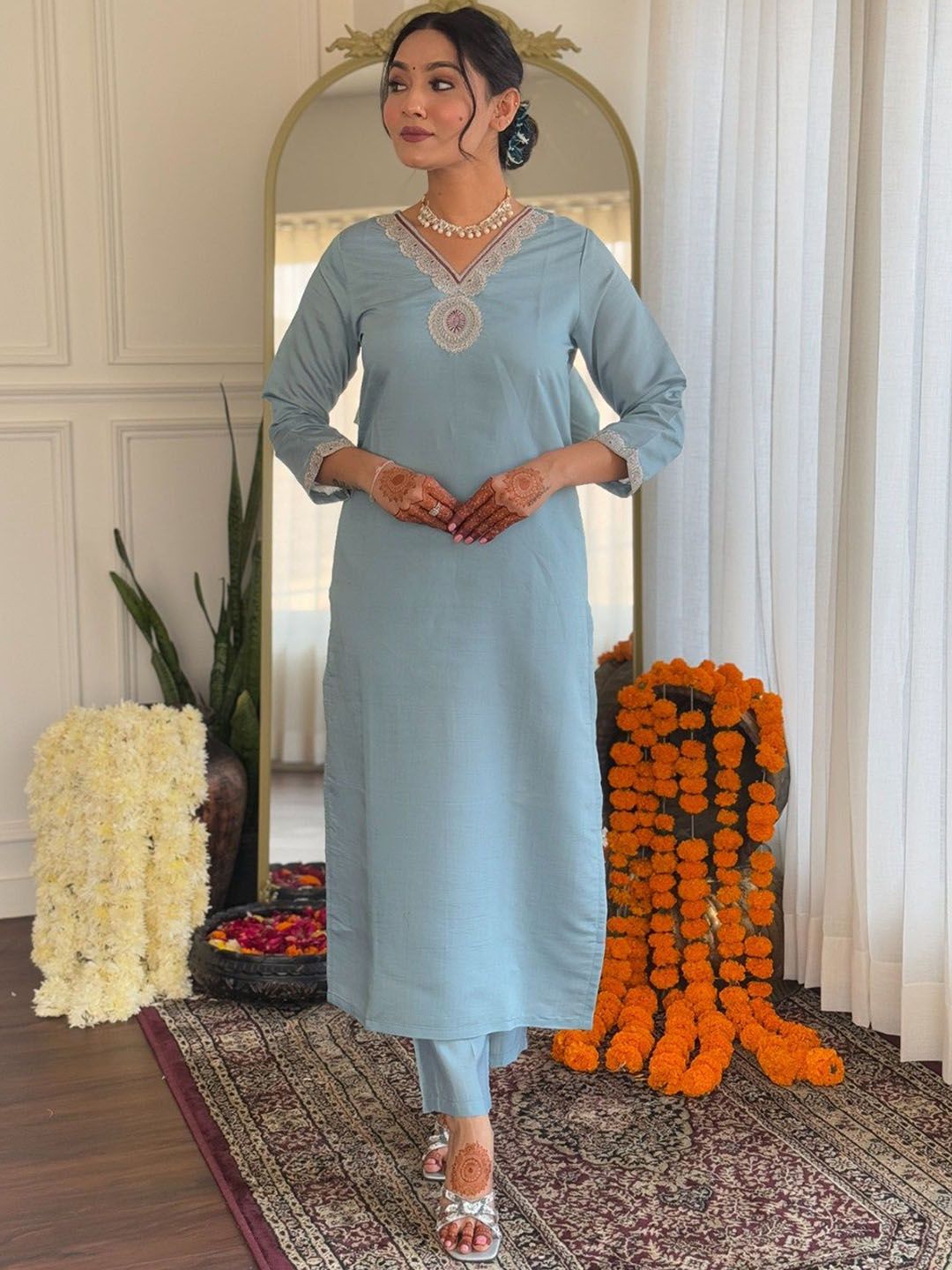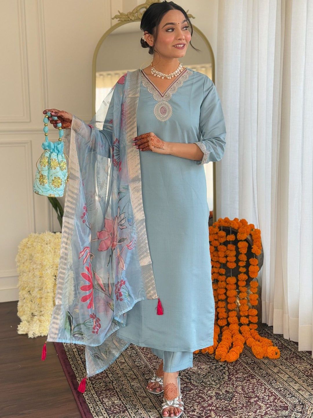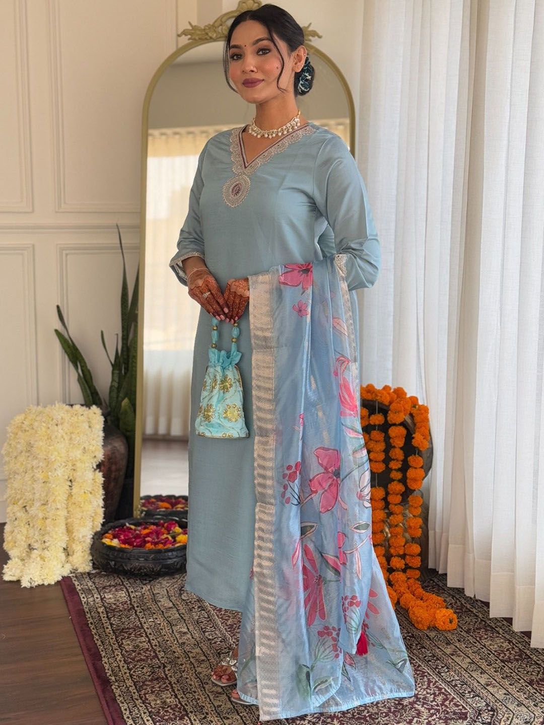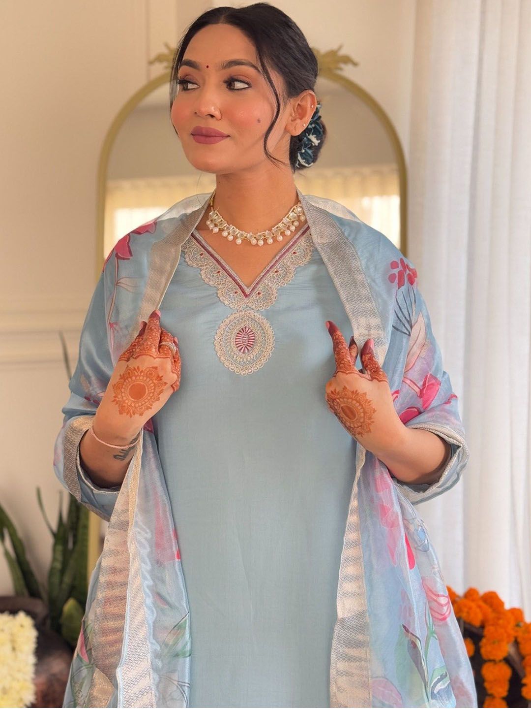 Moda Rapido Women Floral Embroidered Kurta with Trousers & Dupatta