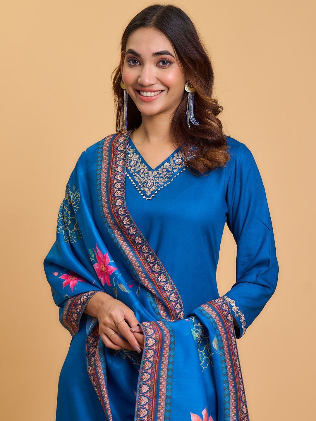 Moda Rapido Women Floral Embroidered Regular Kurti with Trousers & With Dupatta