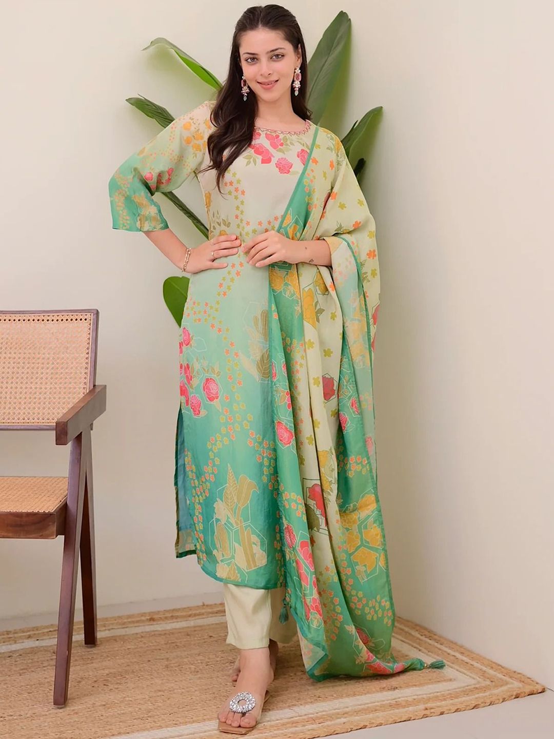 Moda Rapido Women Floral Printed Regular Kurta & Trouser With Dupatta