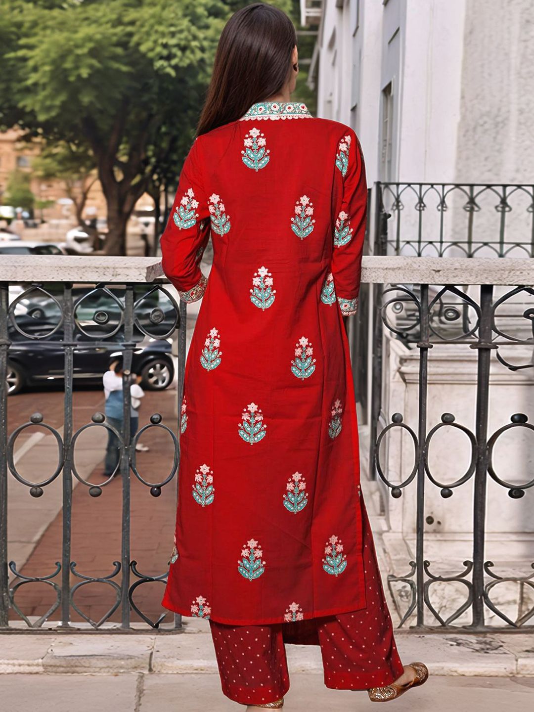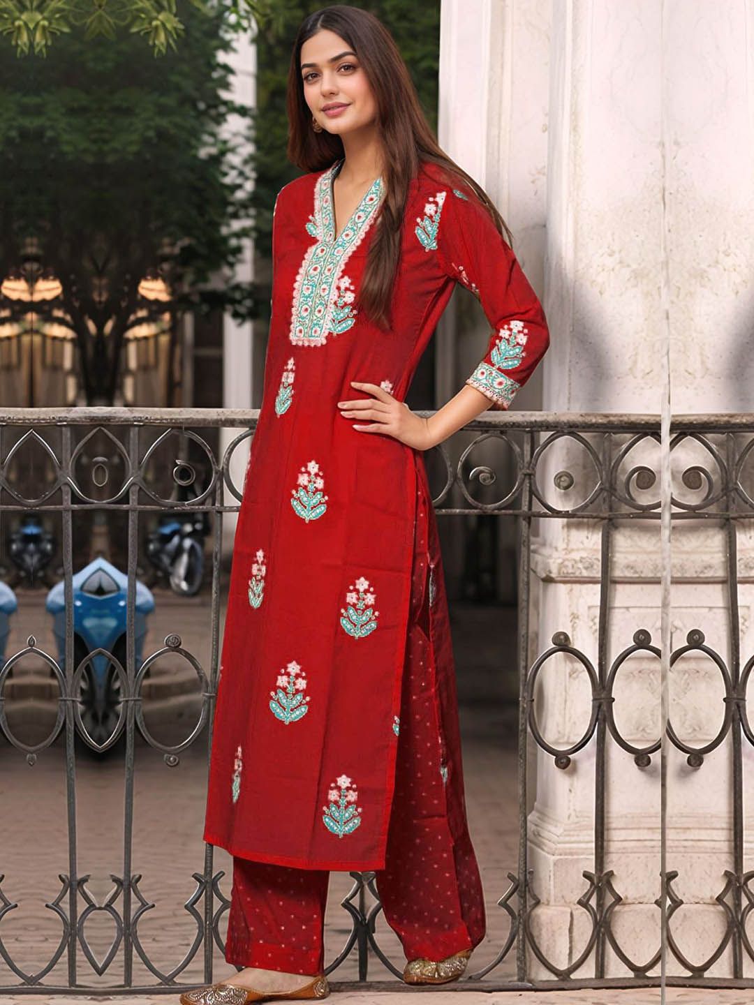 Moda Rapido Women Floral Printed Sequinned Kurta & Palazzo With Dupatta