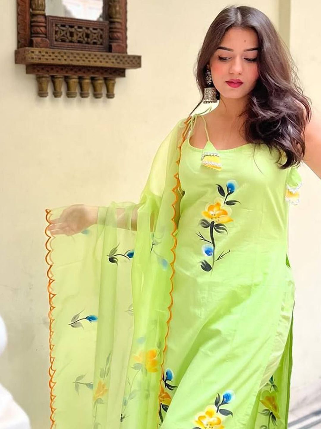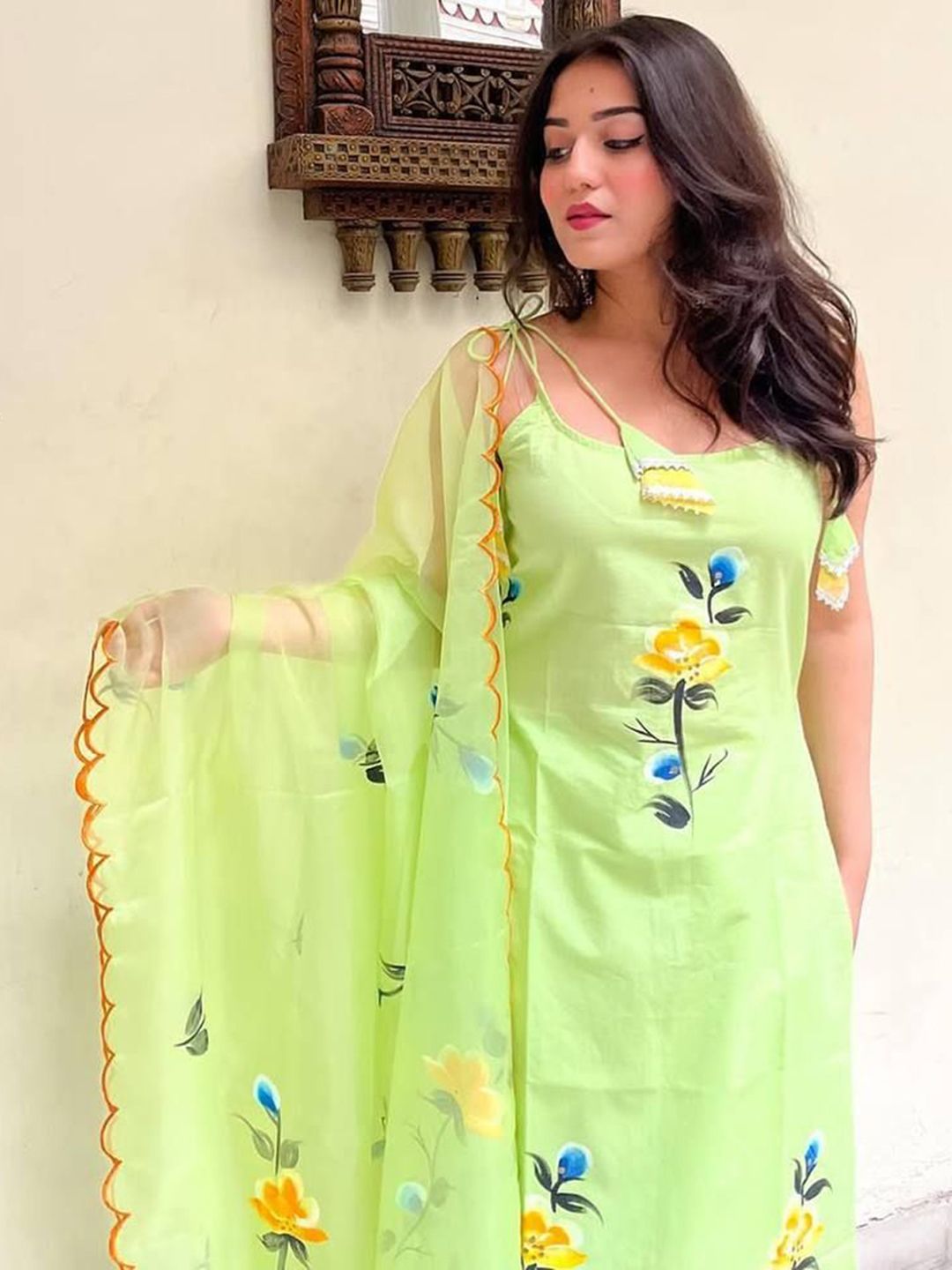 Moda Rapido Women Floral Printed Shoulder Straps Kurta with Trousers & Dupatta