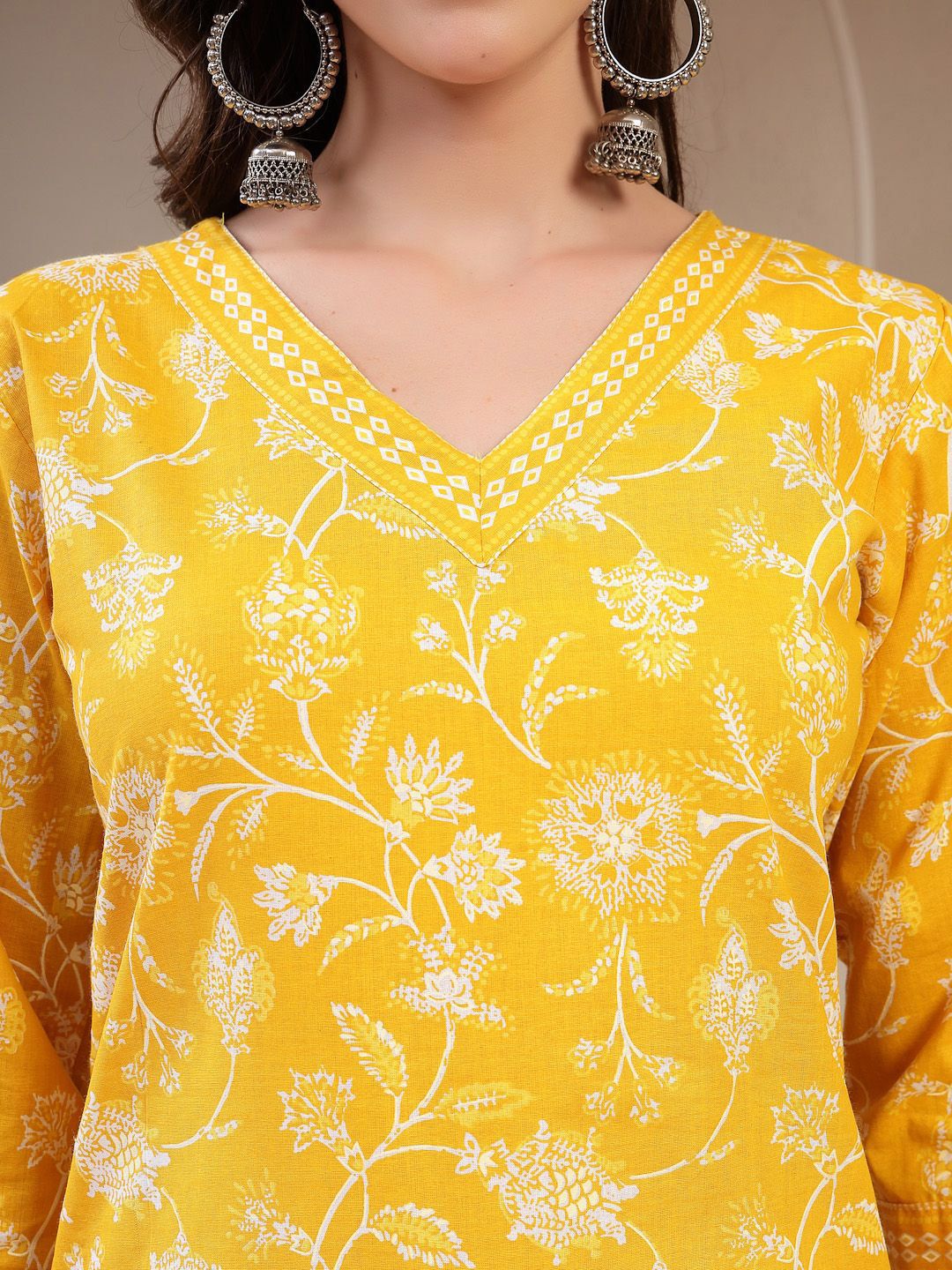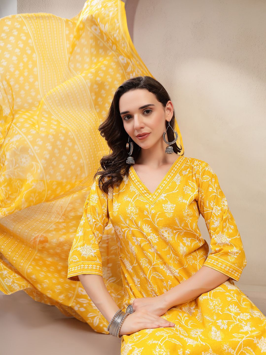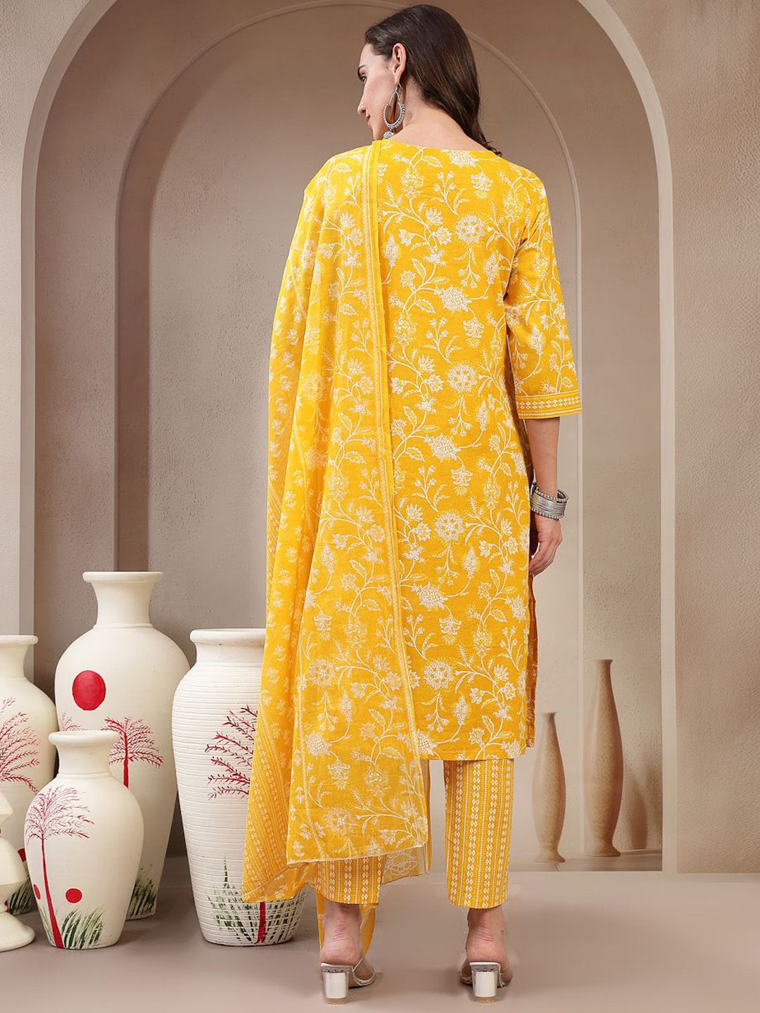 Moda Rapido Women Floral Printed V-Neck Pure Cotton Kurta with Trousers & Dupatta