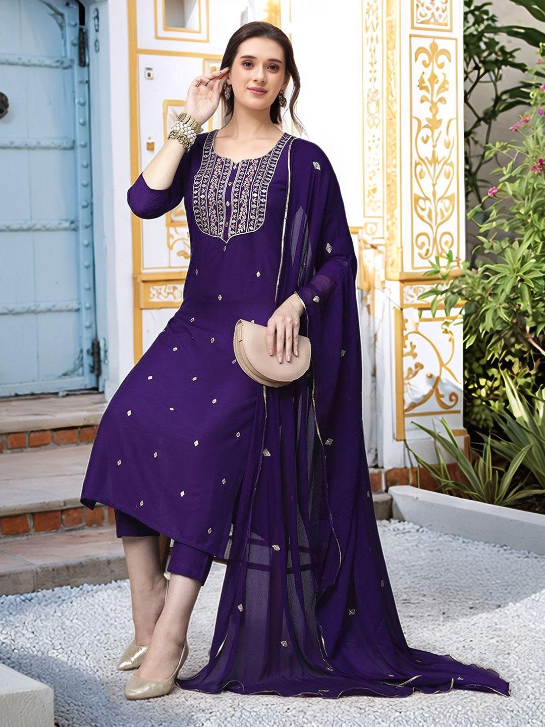 Moda Rapido Women Floral Regular Thread Work Kurta with Trousers & Dupatta