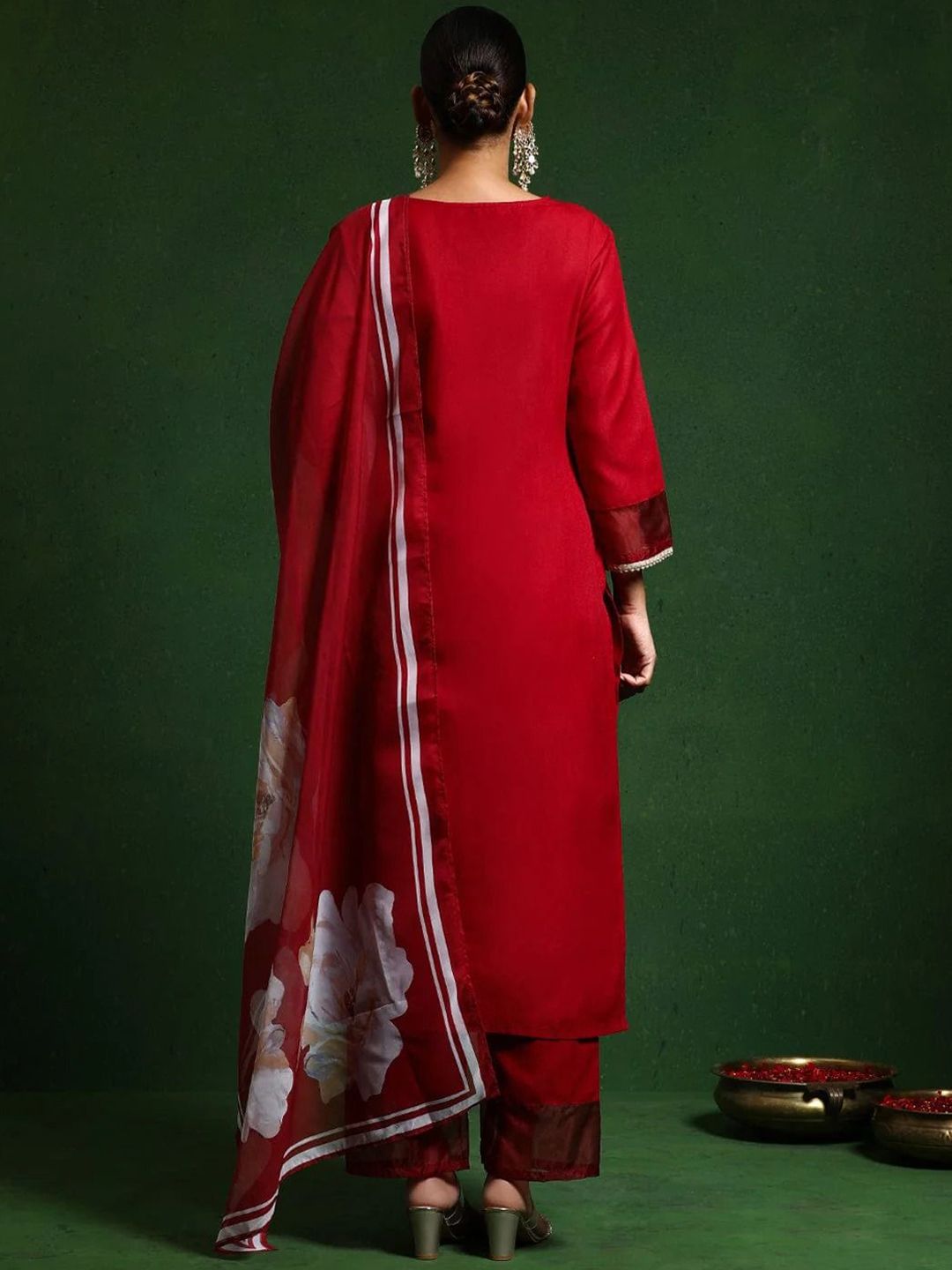 Moda Rapido Women Floral Solid Kurta with Trouser & Dupatta