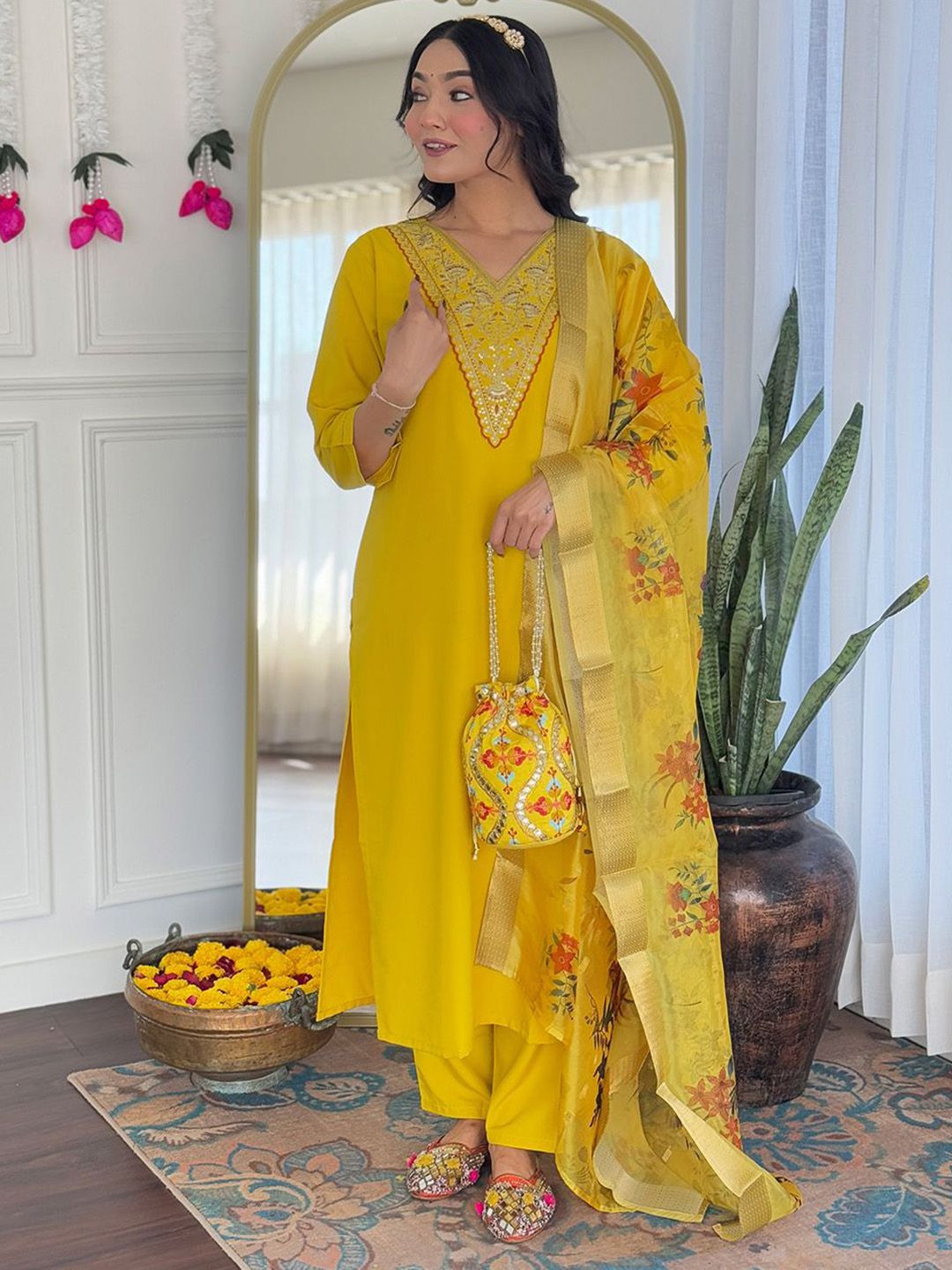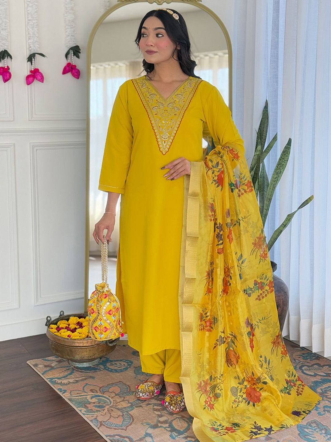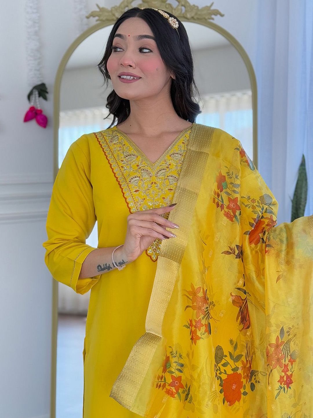 Moda Rapido Women Floral Yoke Design Regular Kurta with Trousers & Dupatta