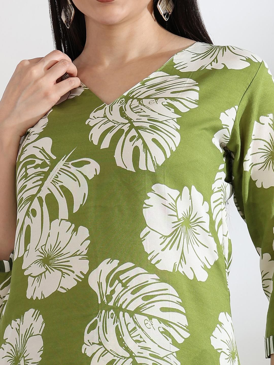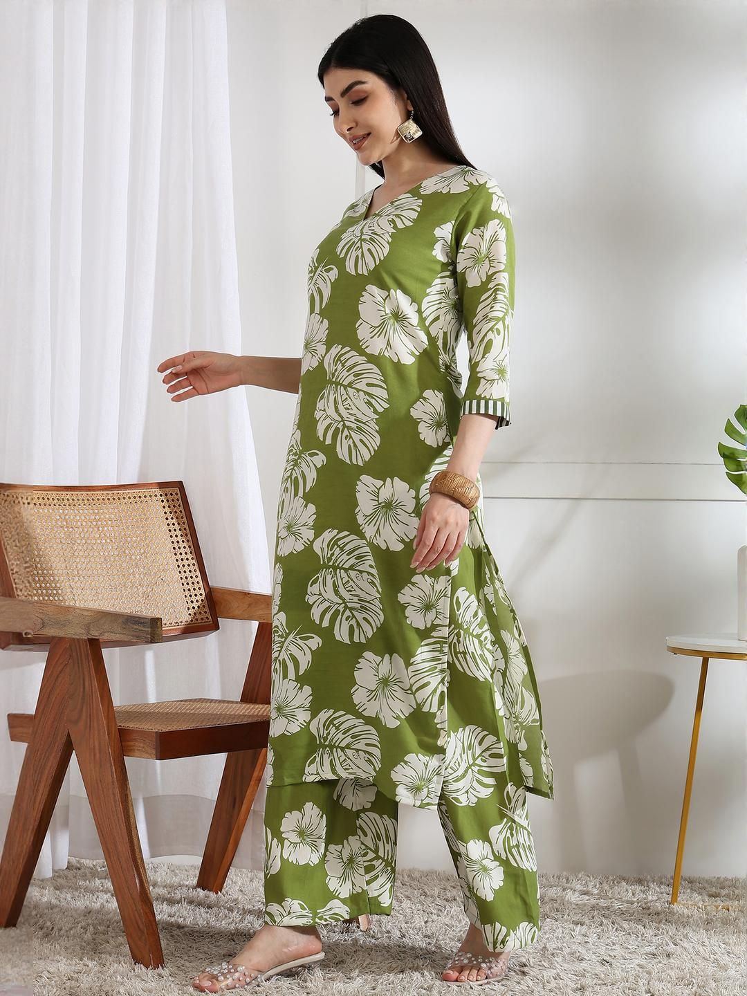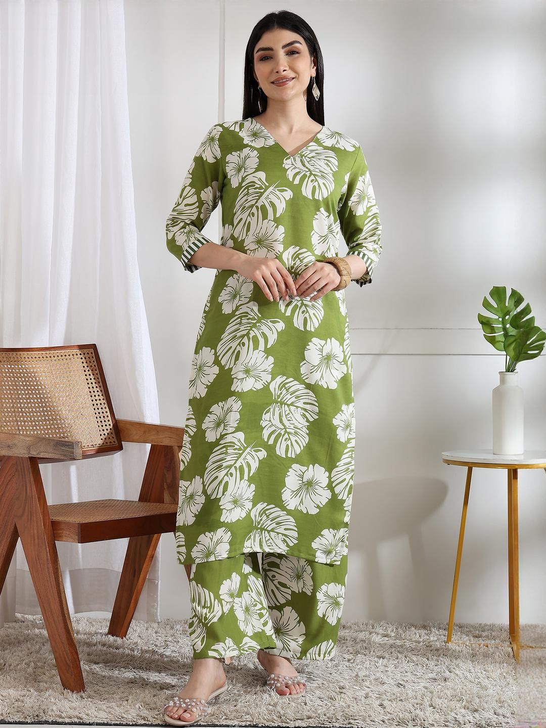 Moda Rapido Women Green Viscose Rayon Kurta Sets