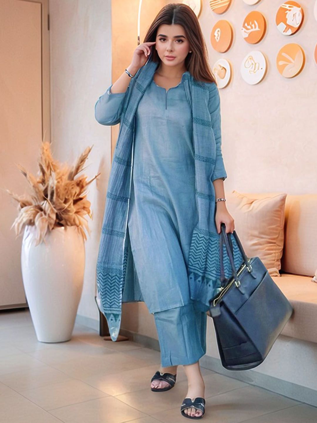 Moda Rapido Women Solid Kurta with Palazzos & Dupatta