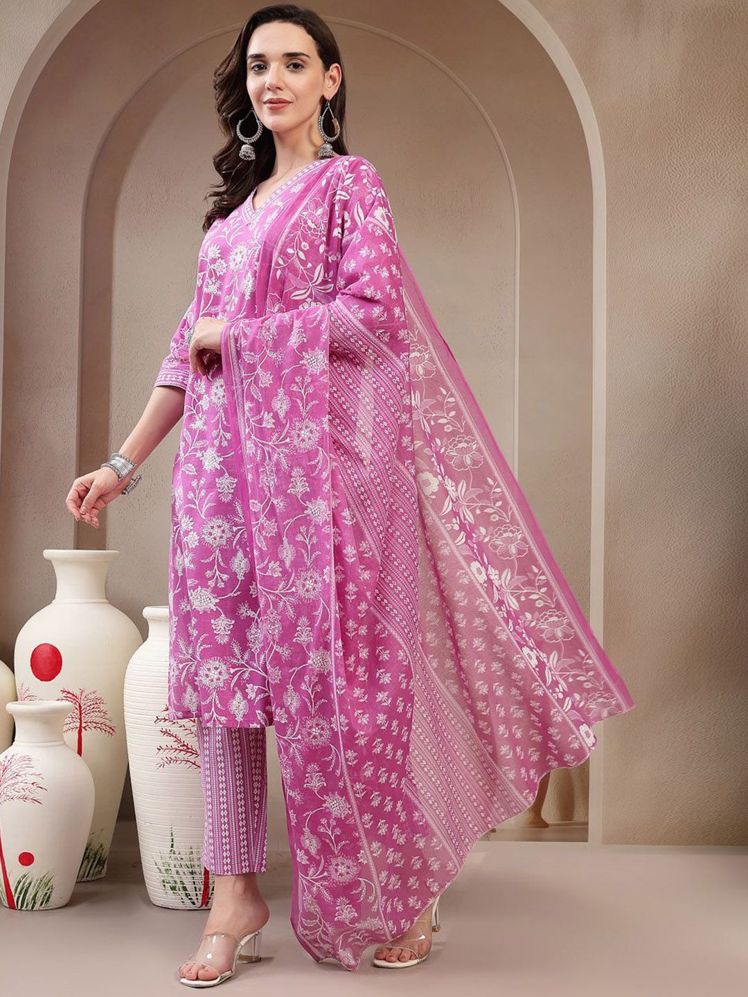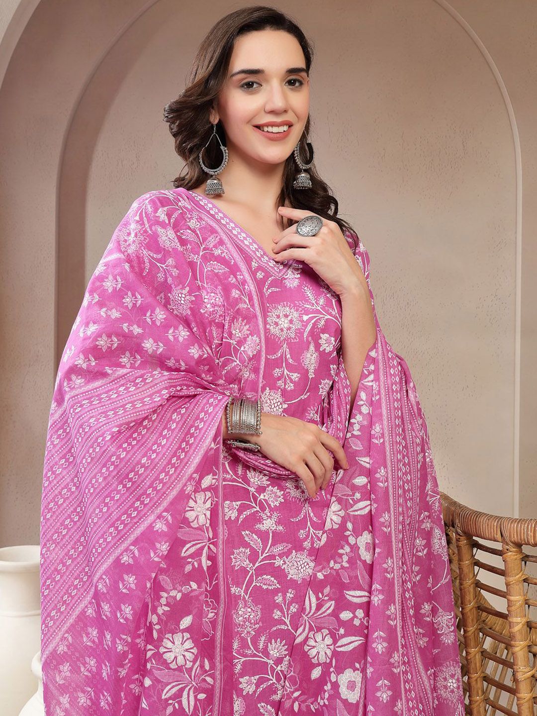 Moda Rapido Women Stylish Pure Cambric Cotton Kurta Pant Dupatta Set Kurta Sets
