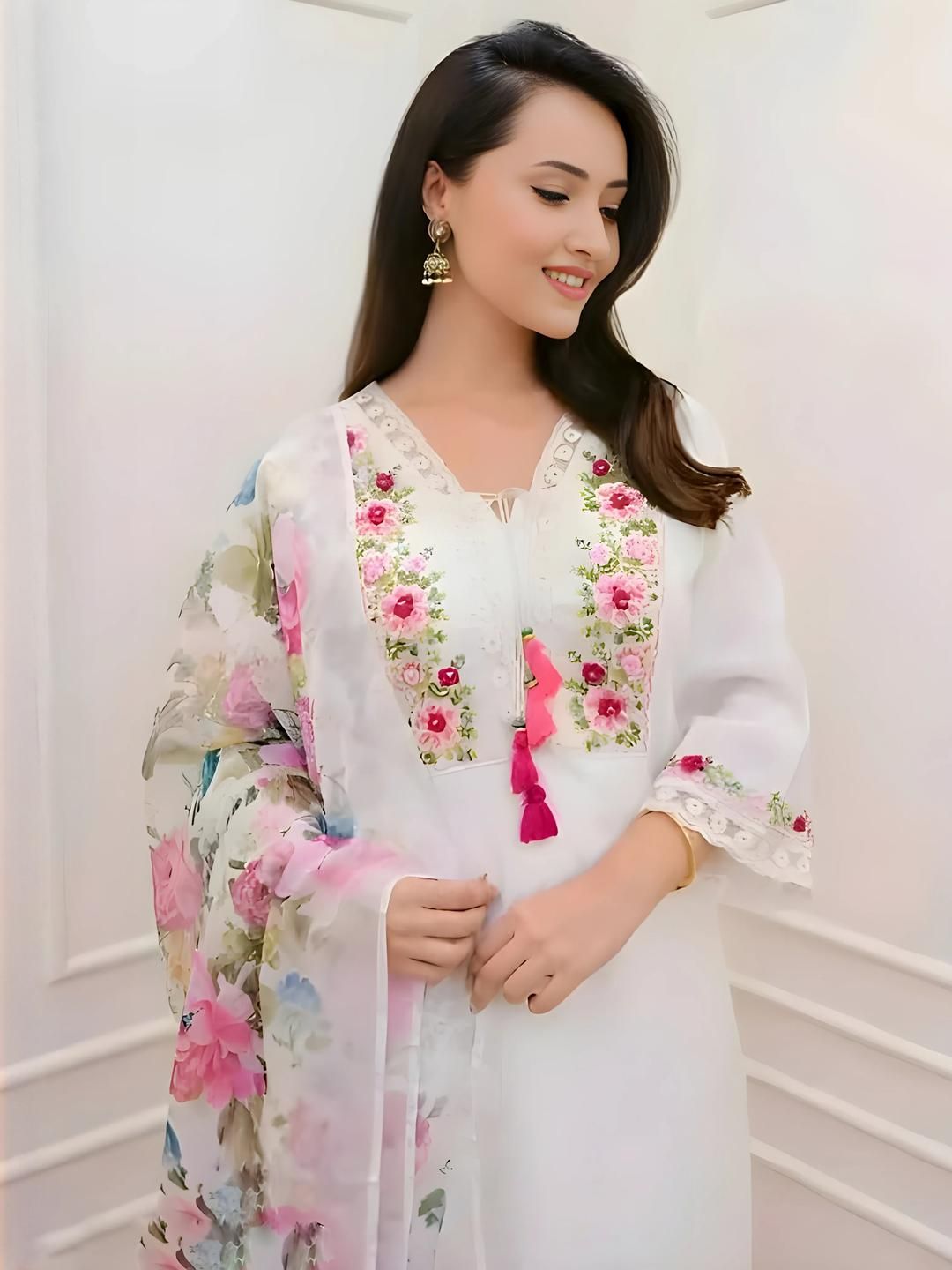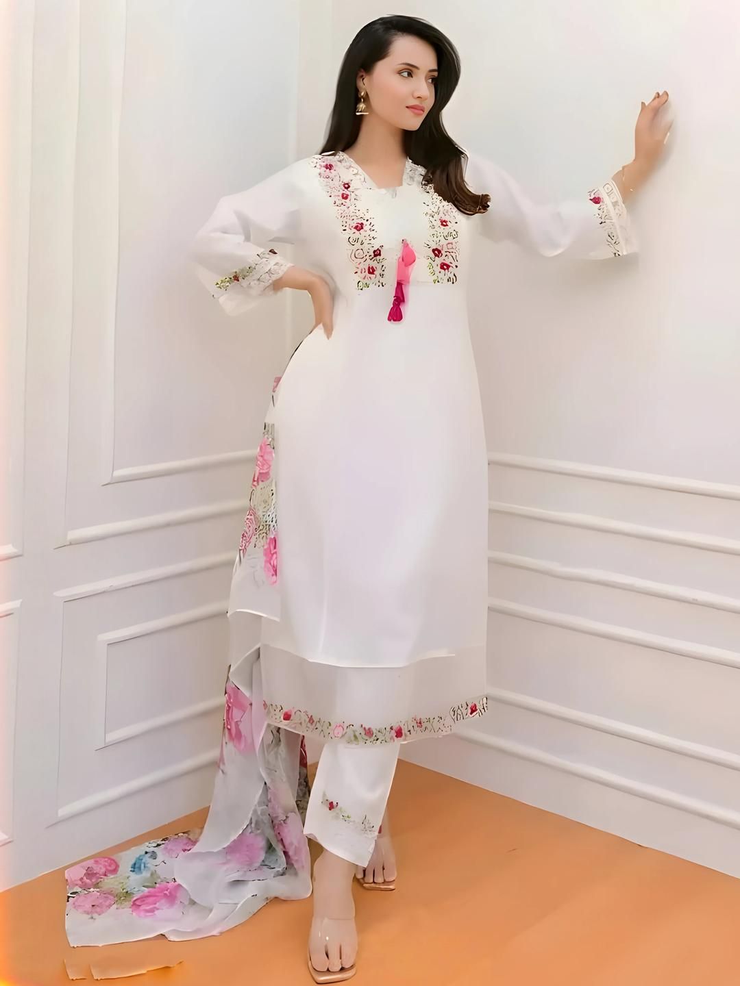 Buy this stylish Moda Rapido Women White Floral Embroidered Angrakha Kurta With Trouser & Dupatta at Marincart Nepal. This product offers great quality and value. Perfect for those looking for the latest trends in fashion. Get yours now at unbeatable prices.