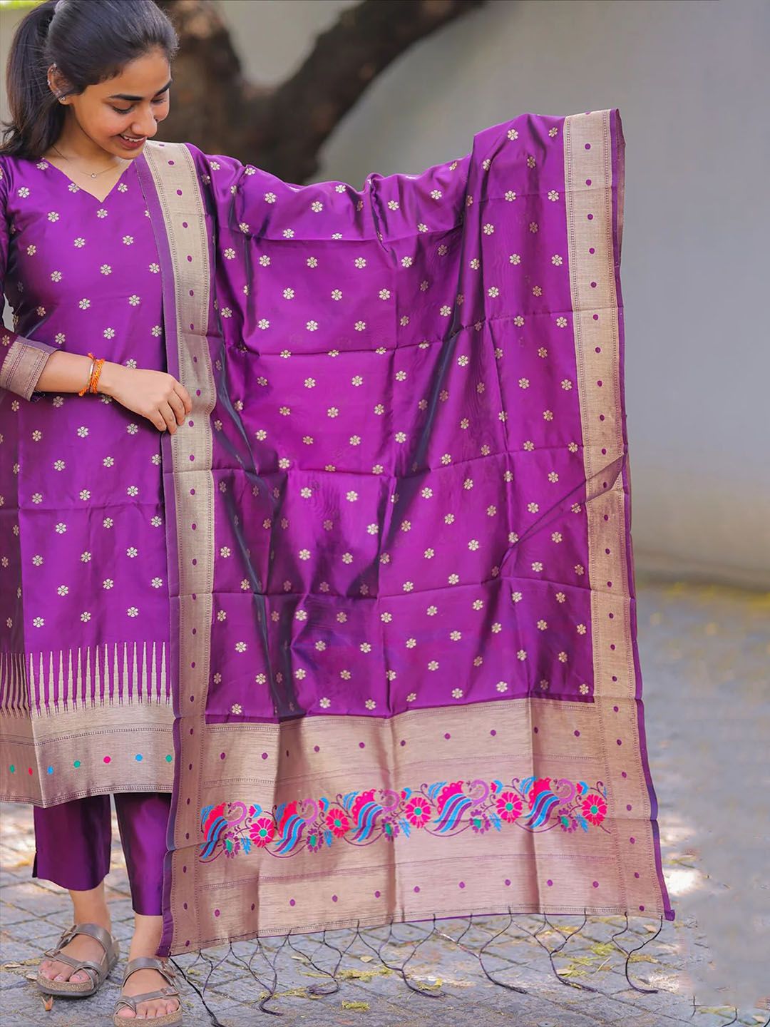 Moda Rapido Women Woven Design Regular Kurta with Trousers & Dupatta