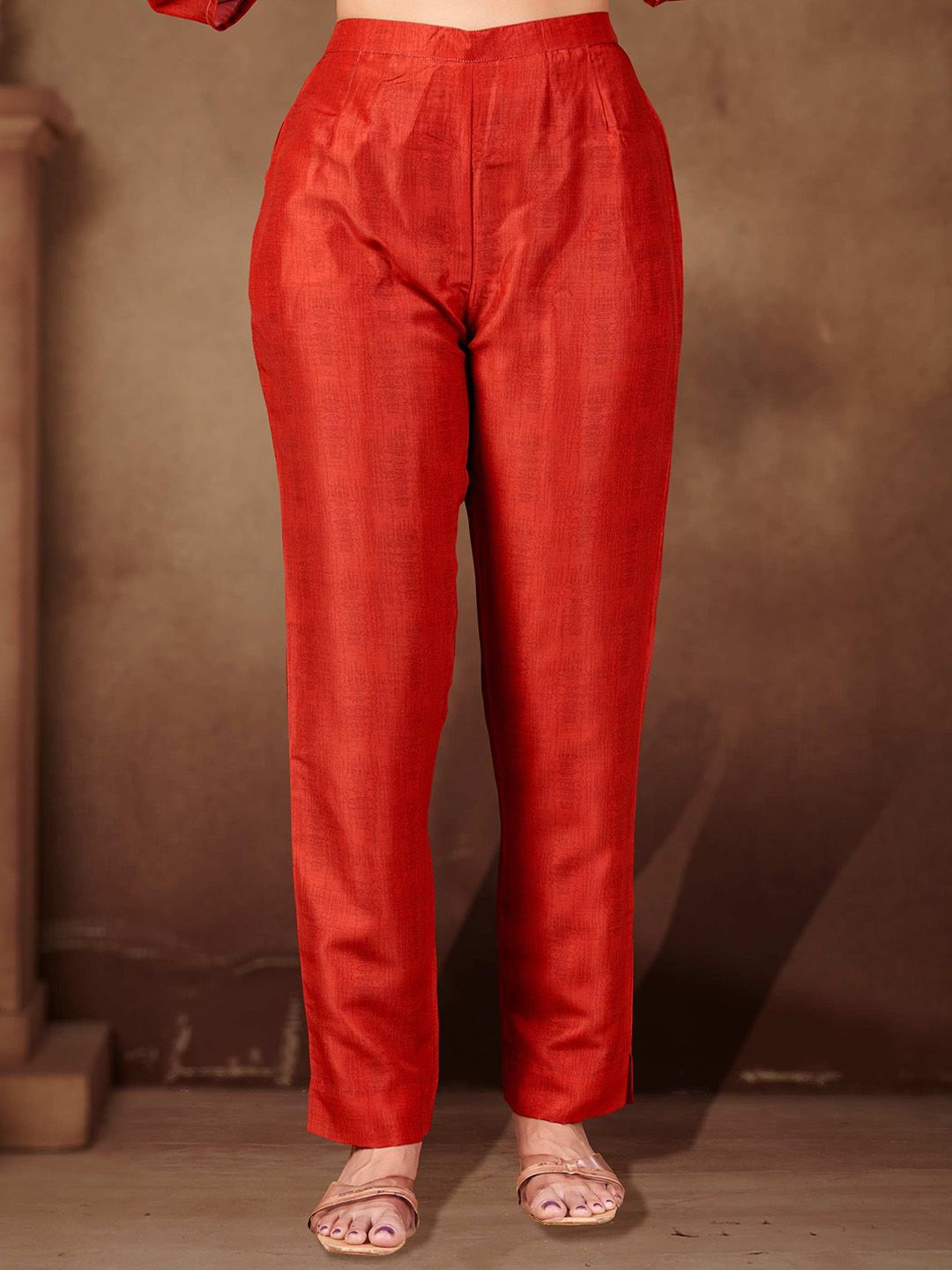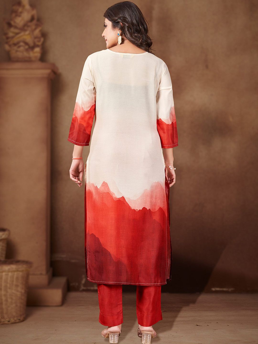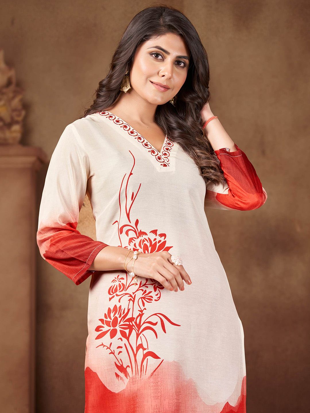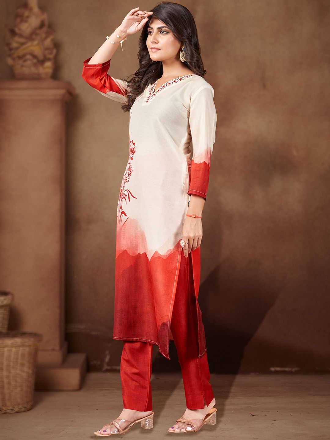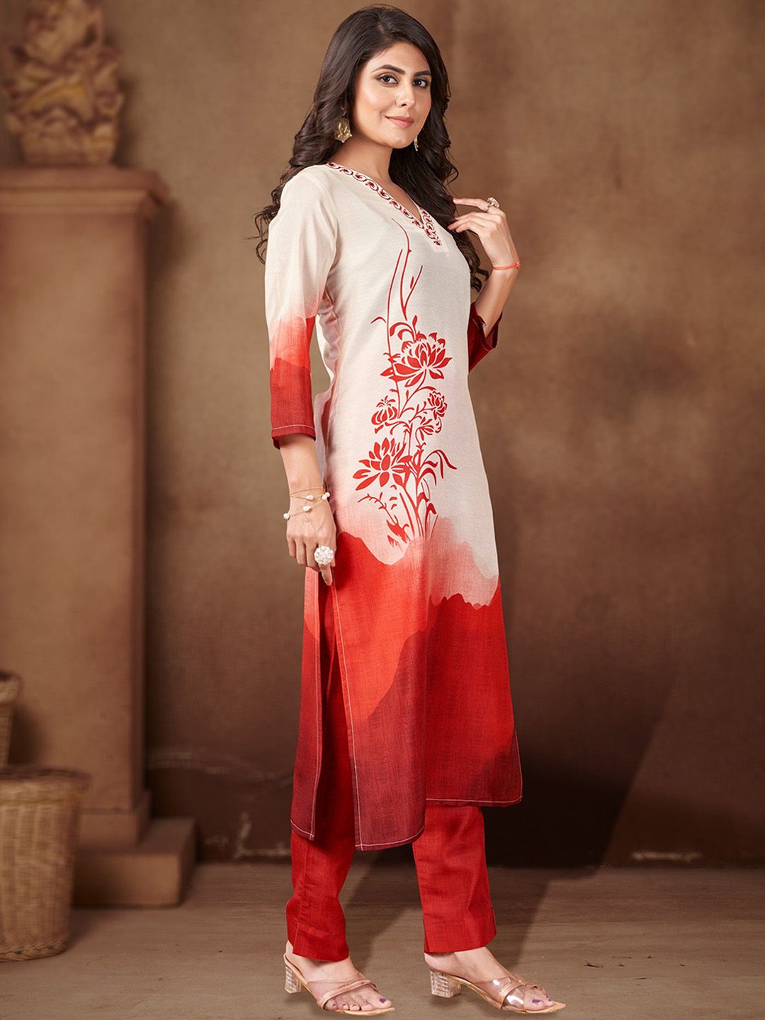 MOJILAA Floral Printed V-Neck Sequinned Straight Kurta With Trousers